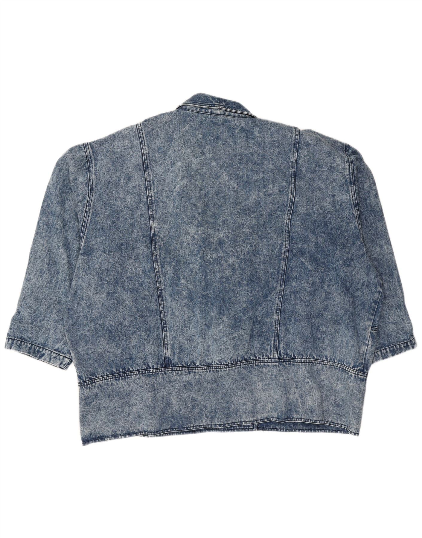 - Описание ИИ: Эта винтажная женская джинсовая куртка изготовлена из 100-процентного хлопка. Он имеет характерную синюю кислотную отделку, типичную для стиля 80-х годов. Вырез с воротником и свободный крой создают комфортный силуэт. Рукава длиной три четверти придают изделию неповторимый шарм. Передняя часть застегивается на кнопки и дополнена практичными передними карманами. Эта куртка сочетает в себе ретро-шарм и повседневную практичность.