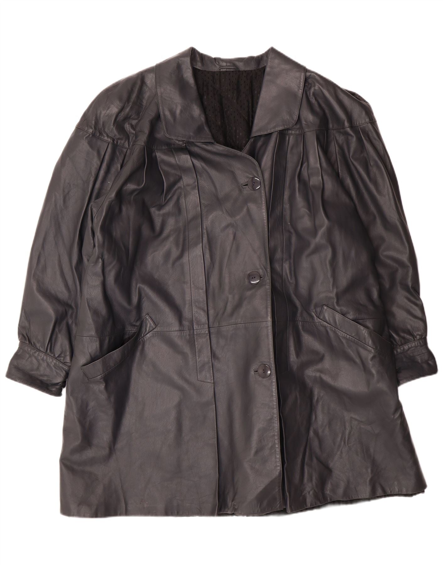 Винтажное женское кожаное пальто оверсайз IT 44 Medium Black Leather Classic