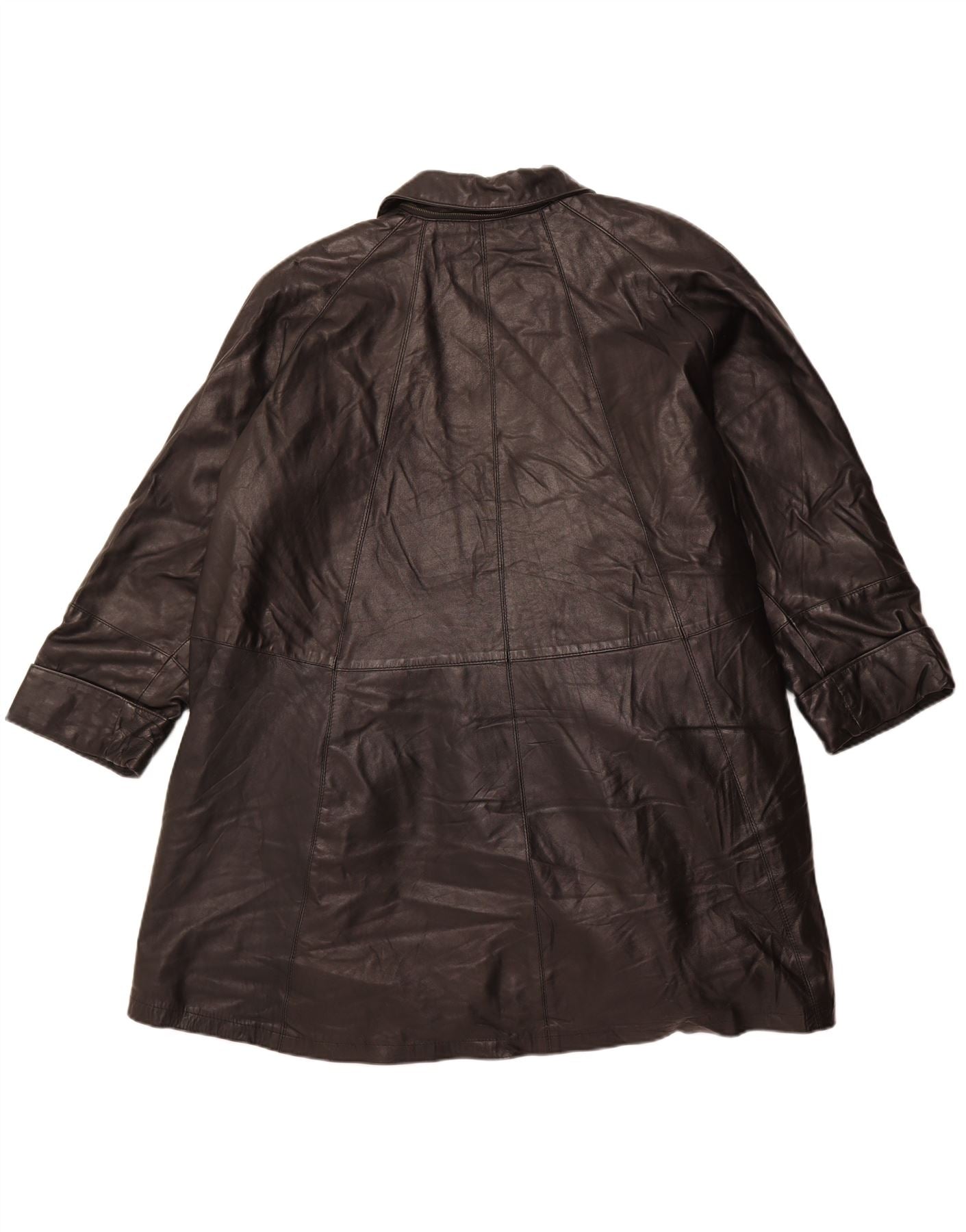 Винтажное женское кожаное пальто оверсайз IT 56, большое черное кожаное