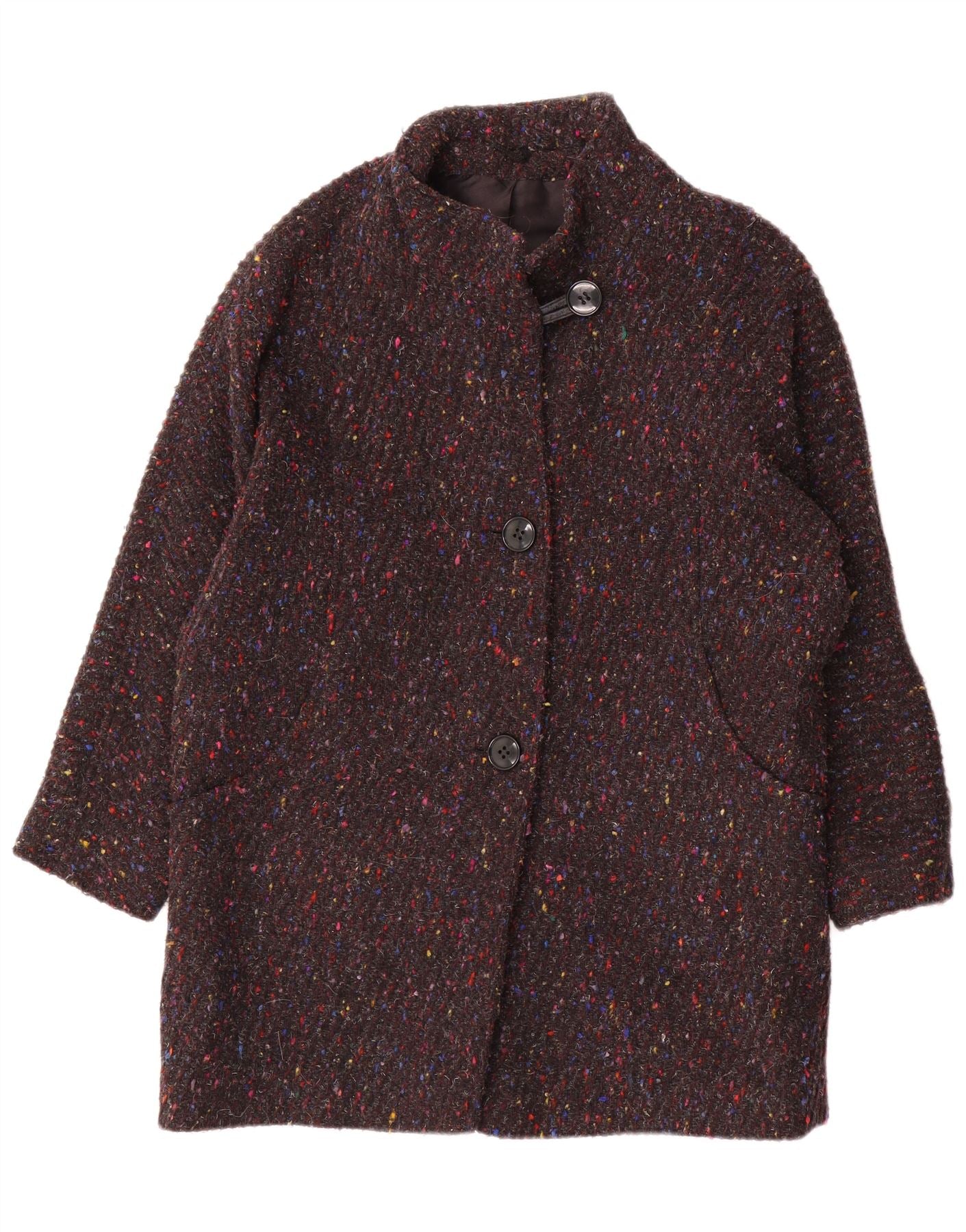 ВИНТАЖНОЕ женское пальто оверсайз EU 40, средний серый цвет в крапинку, шерстяное