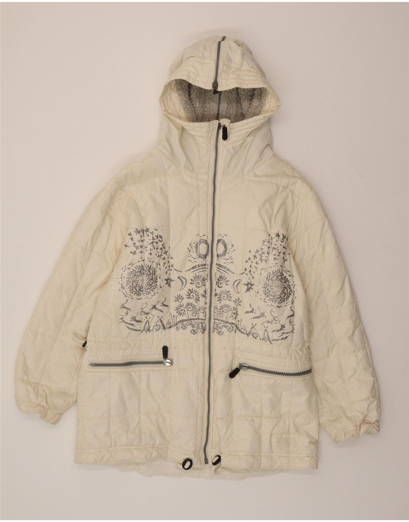 Винтажное женское длинное стеганое пальто UK 10, маленький белый полиэстер с узором пейсли