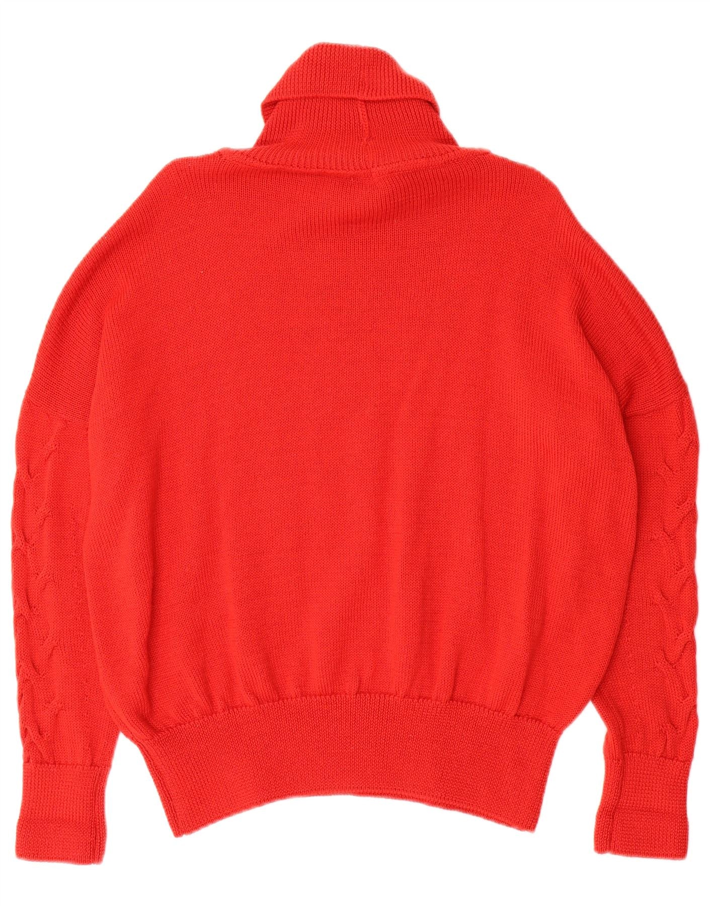 VINTAGE Womens Oversized Roll Neck Jumper Sweater UK 12 Medium Red Wool