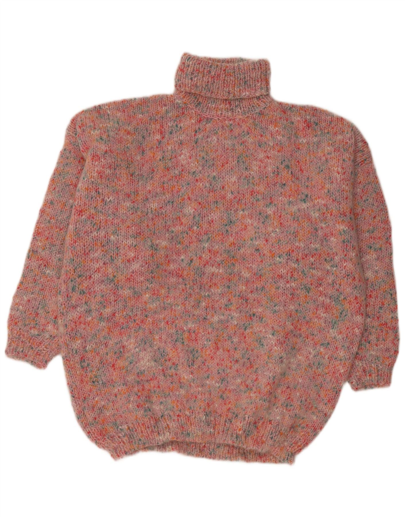 ВИНТАЖНЫЙ женский свободный джемпер с высоким воротником, Великобритания, 20, 2XL, розовый в крапинку