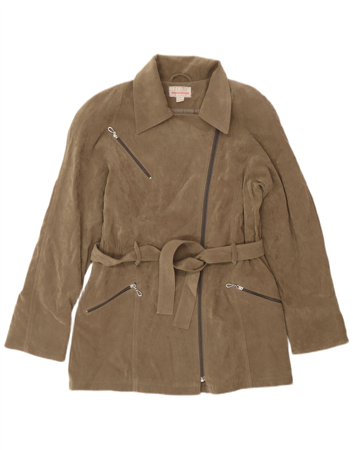 Винтажная женская замшевая куртка оверсайз UK 10, маленькая, бежевая
