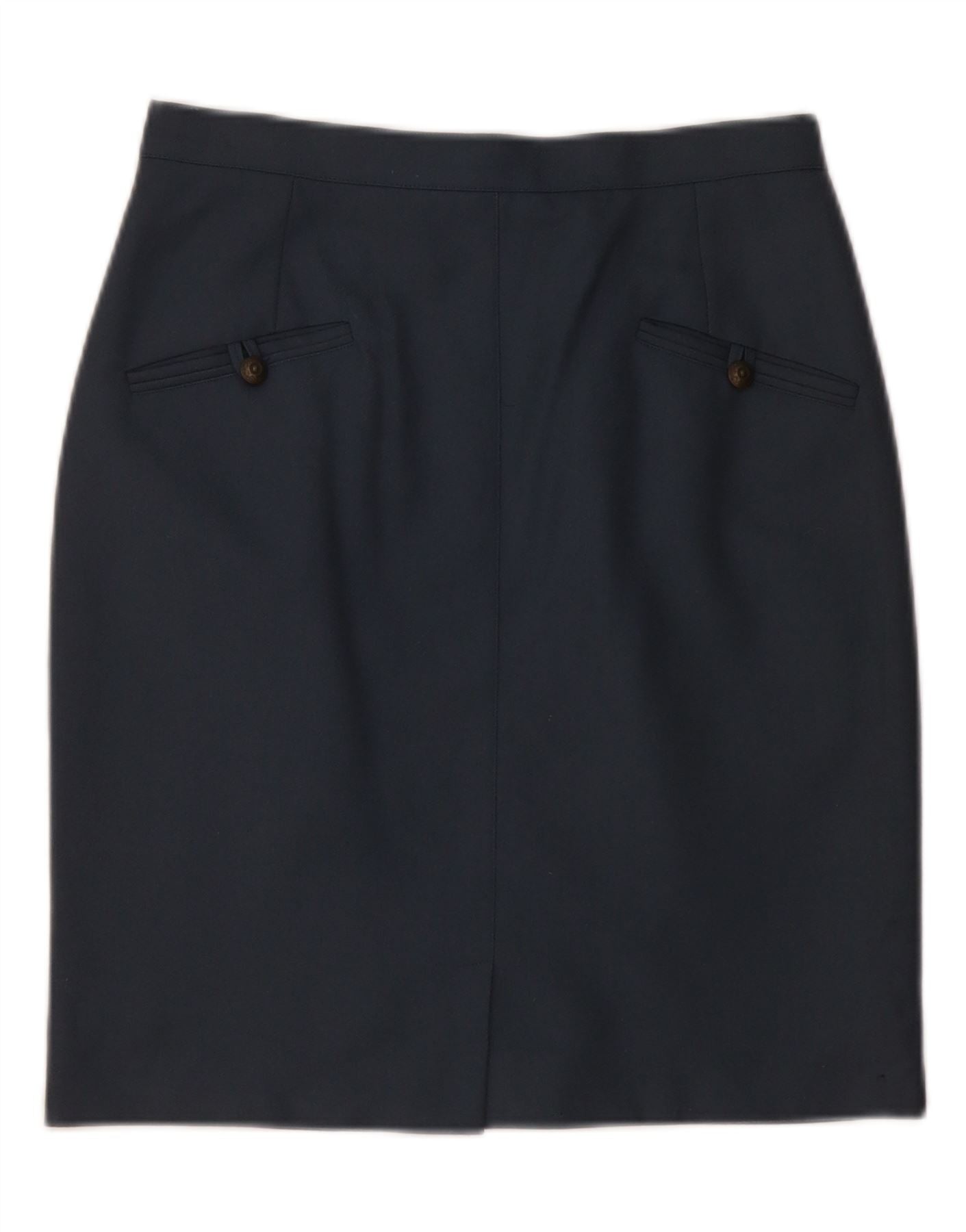 ВИНТАЖНАЯ женская юбка-карандаш среднего размера W28 Темно-синяя шерсть