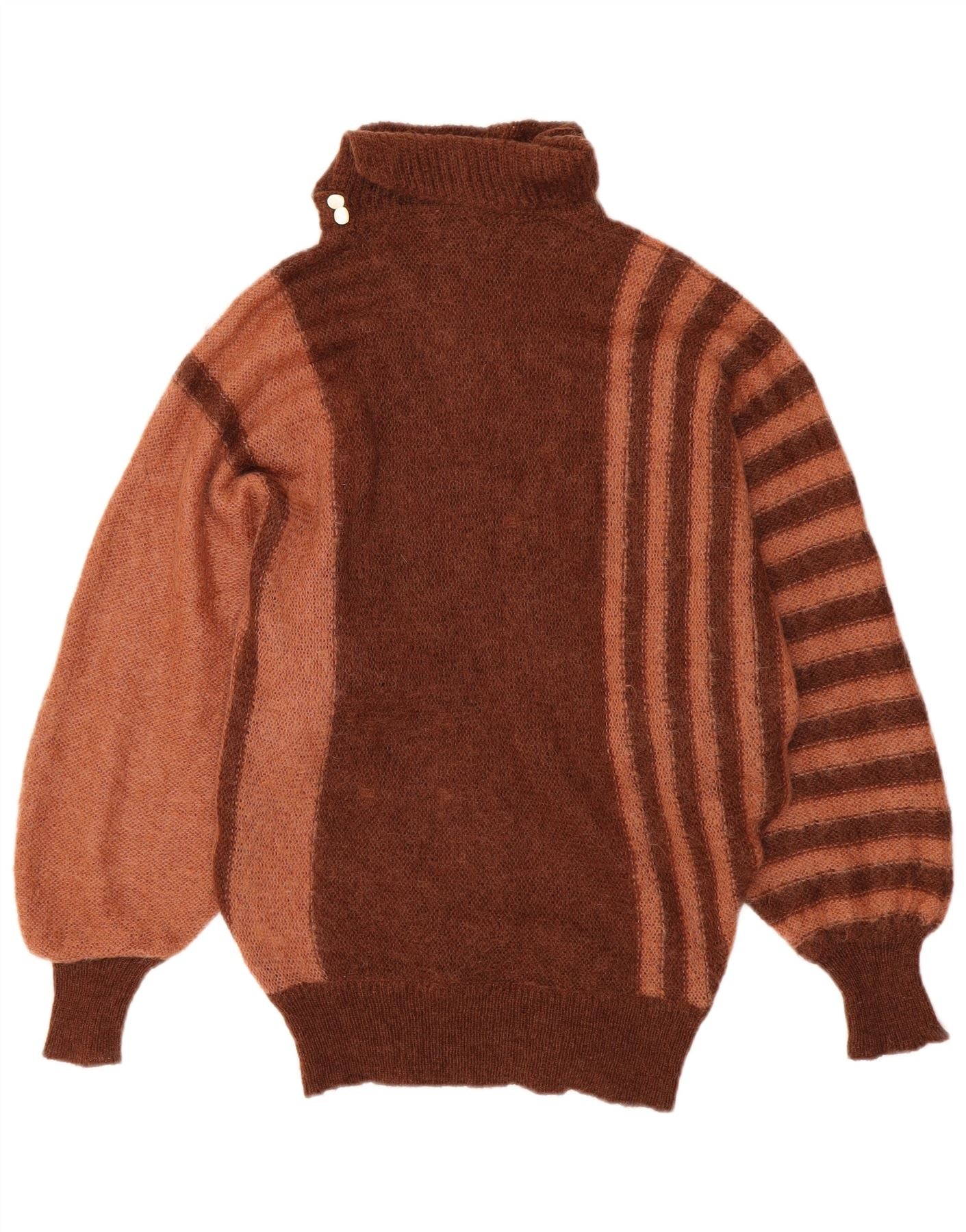ВИНТАЖНЫЙ женский джемпер с высоким воротником, Великобритания 14, большой коричневый полосатый мохер