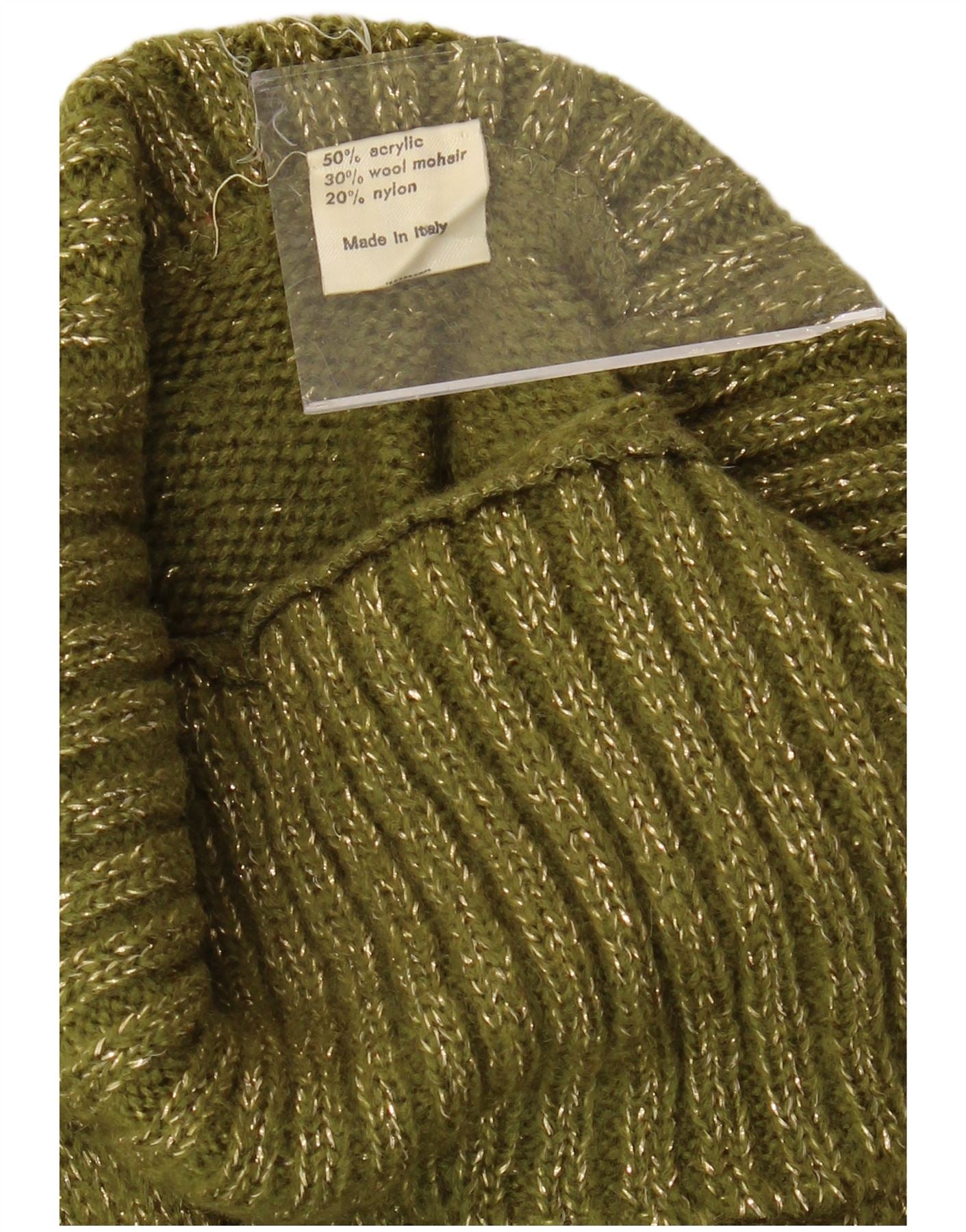 ВИНТАЖНЫЙ женский джемпер с высоким воротником, Великобритания, 16, большой зеленый акрил в крапинку
