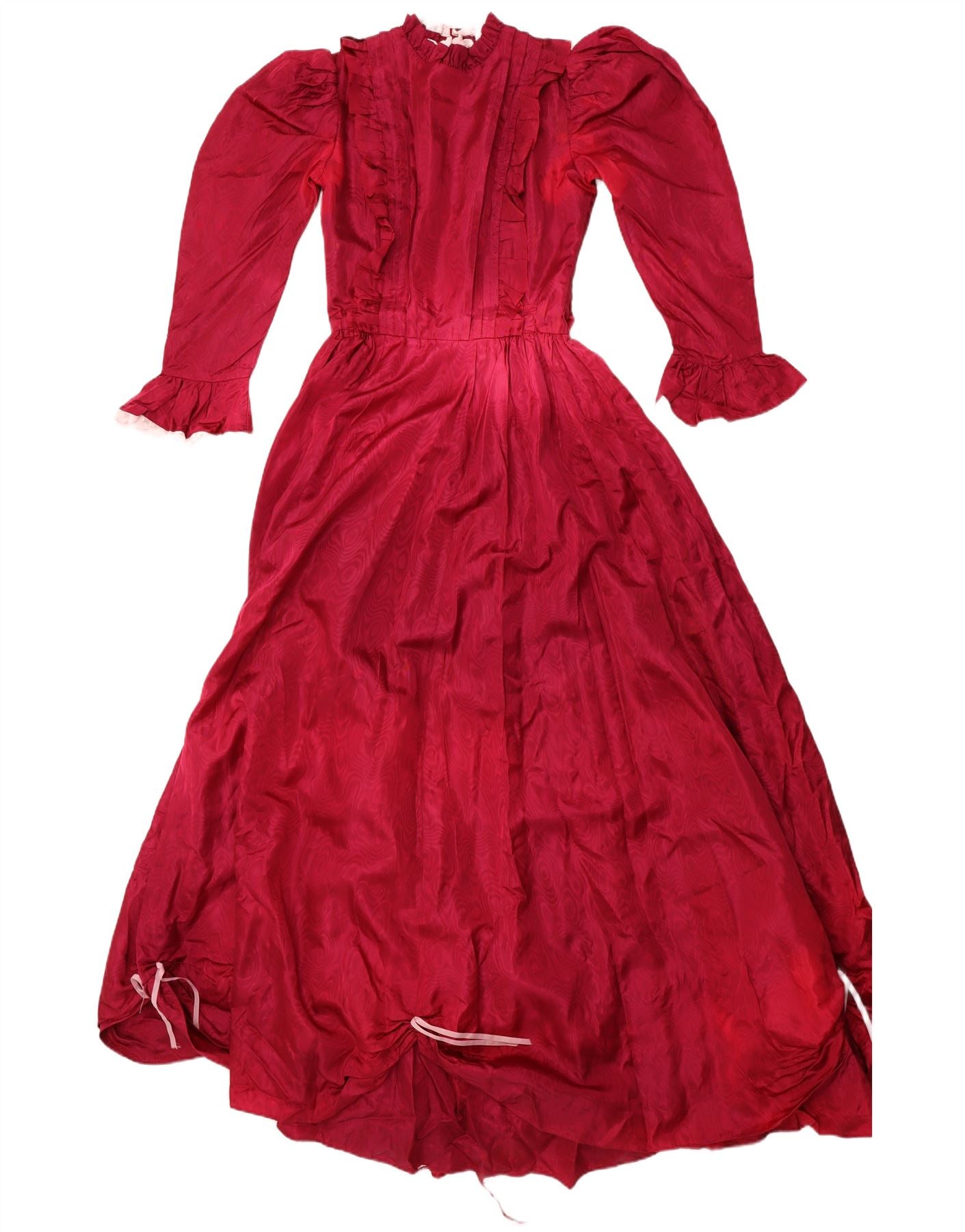 ВИНТАЖНОЕ женское платье принцессы с рюшами спереди, Великобритания, 10 шт., маленькое бордовое