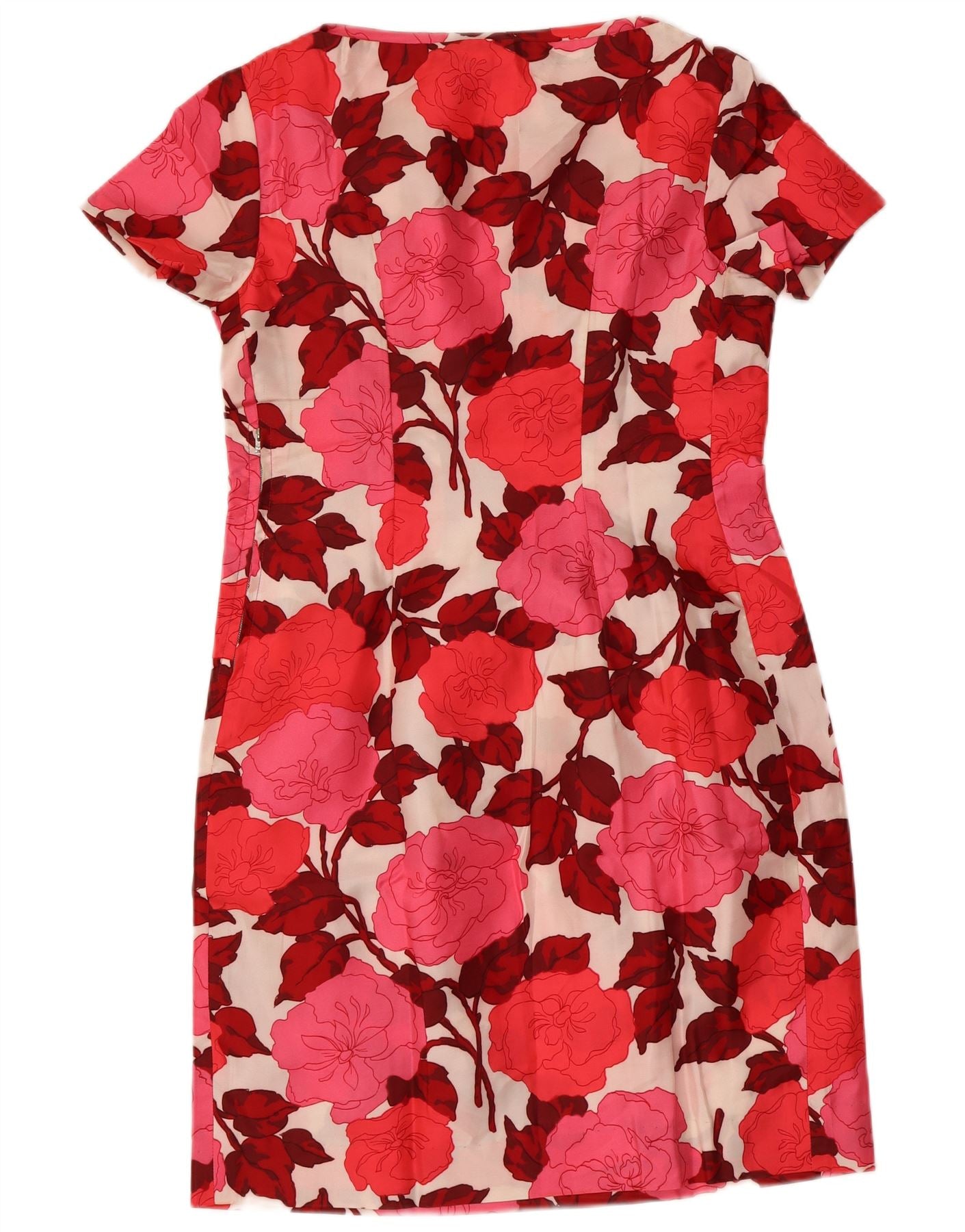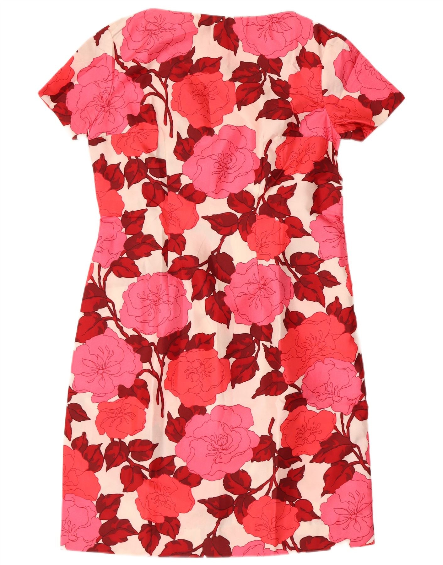 ВИНТАЖНОЕ женское платье-футляр UK 12, средний красный с цветочным принтом