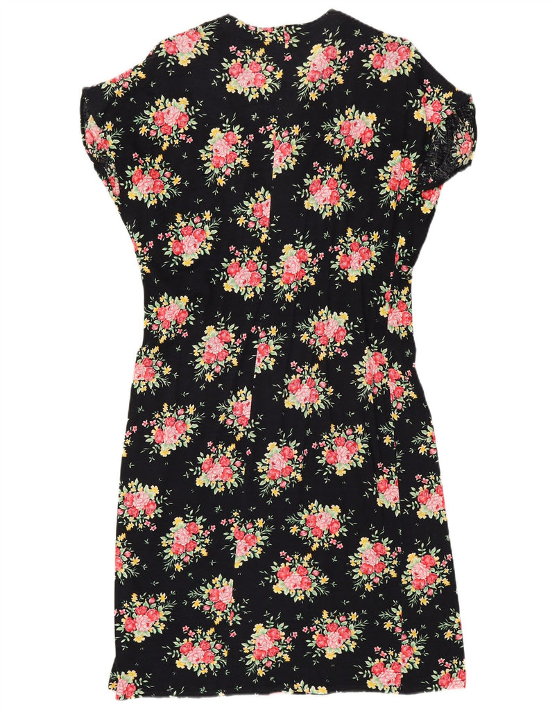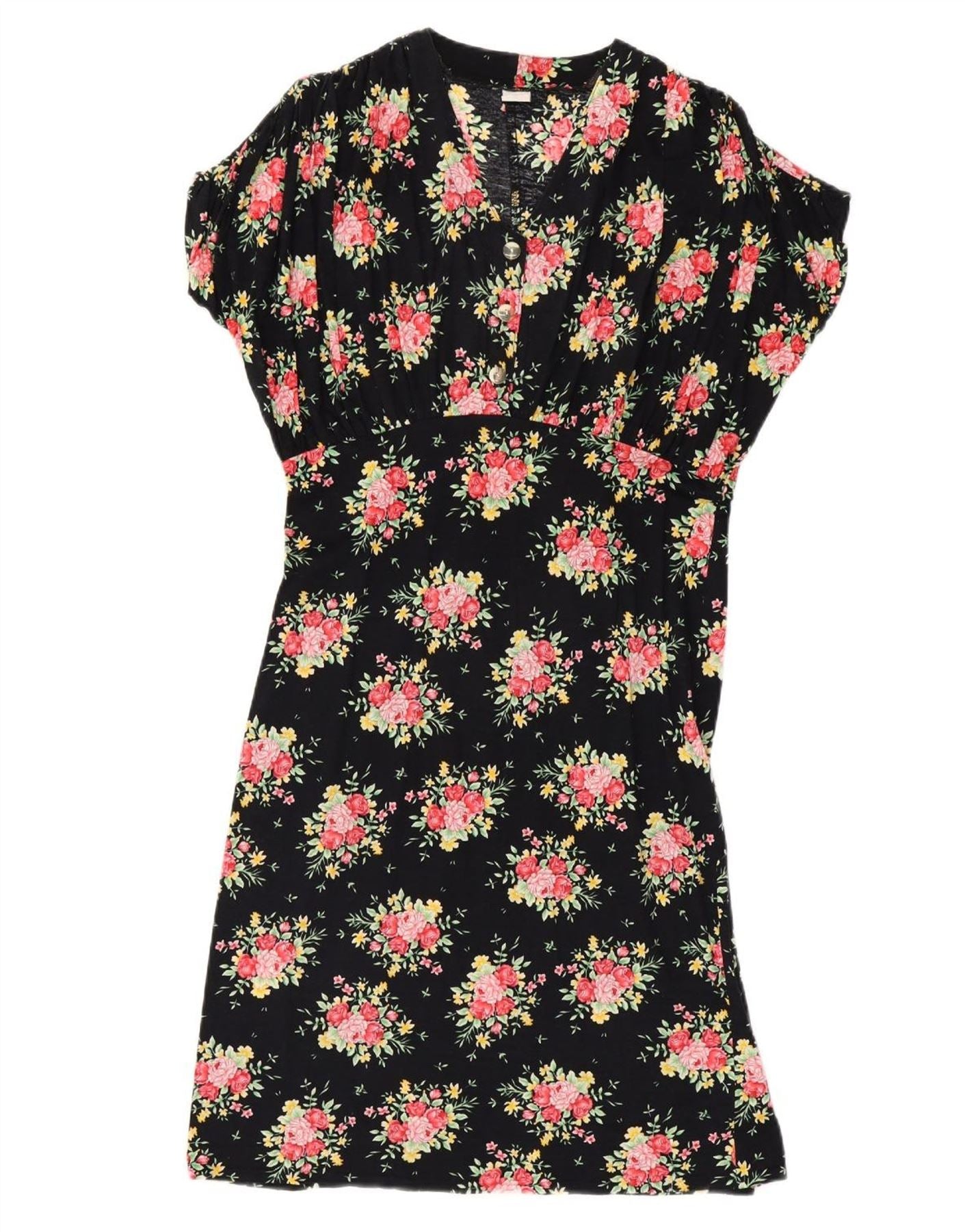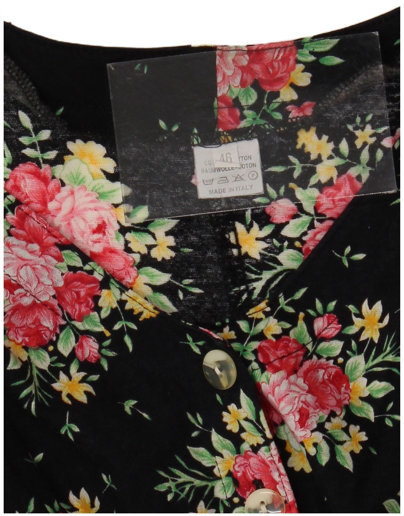 ВИНТАЖНОЕ женское платье прямого кроя IT 46, большое черное цветочное хлопковое платье