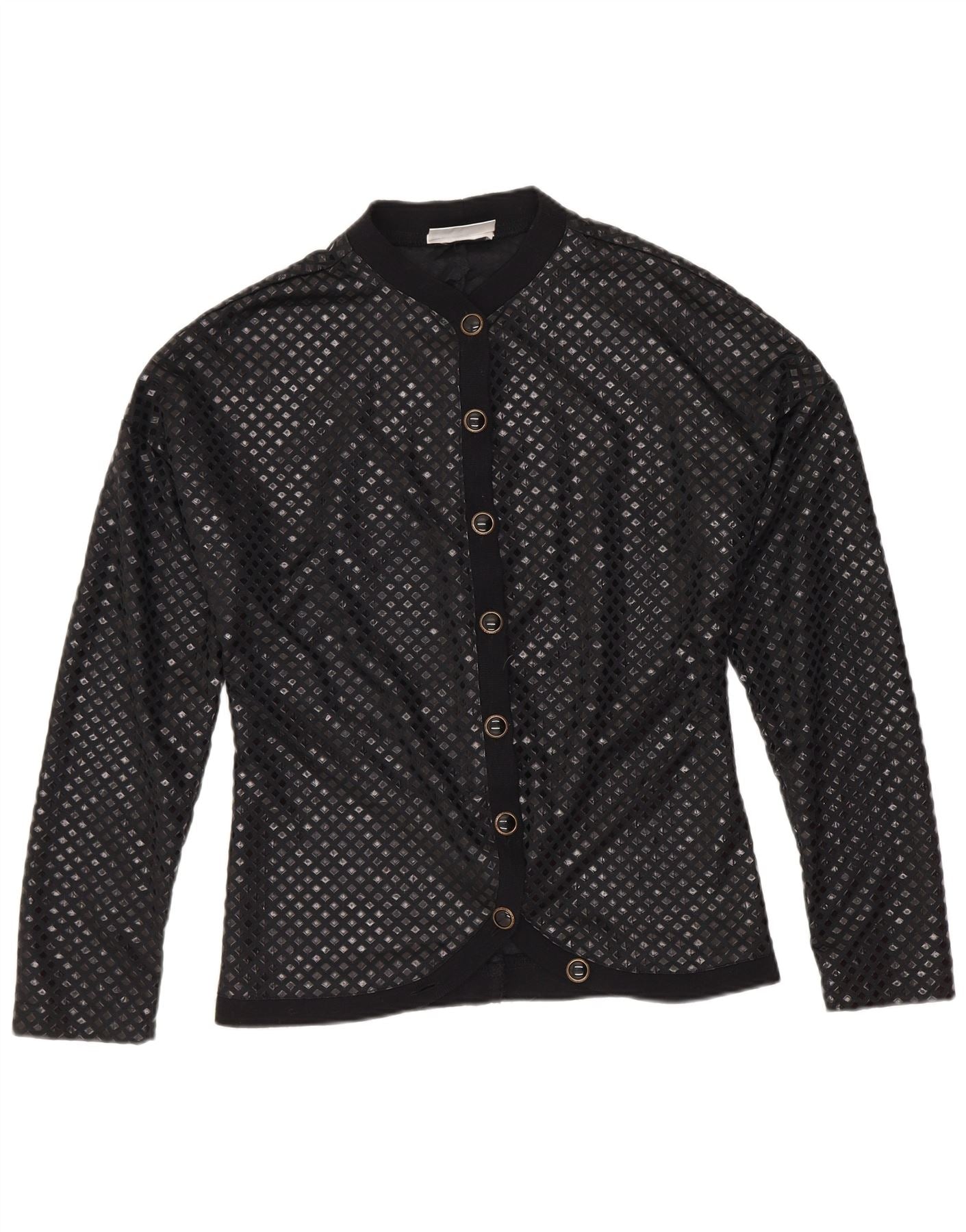 Винтажная женская блузка-рубашка UK 12, средний черный полиамид с геометрическим рисунком