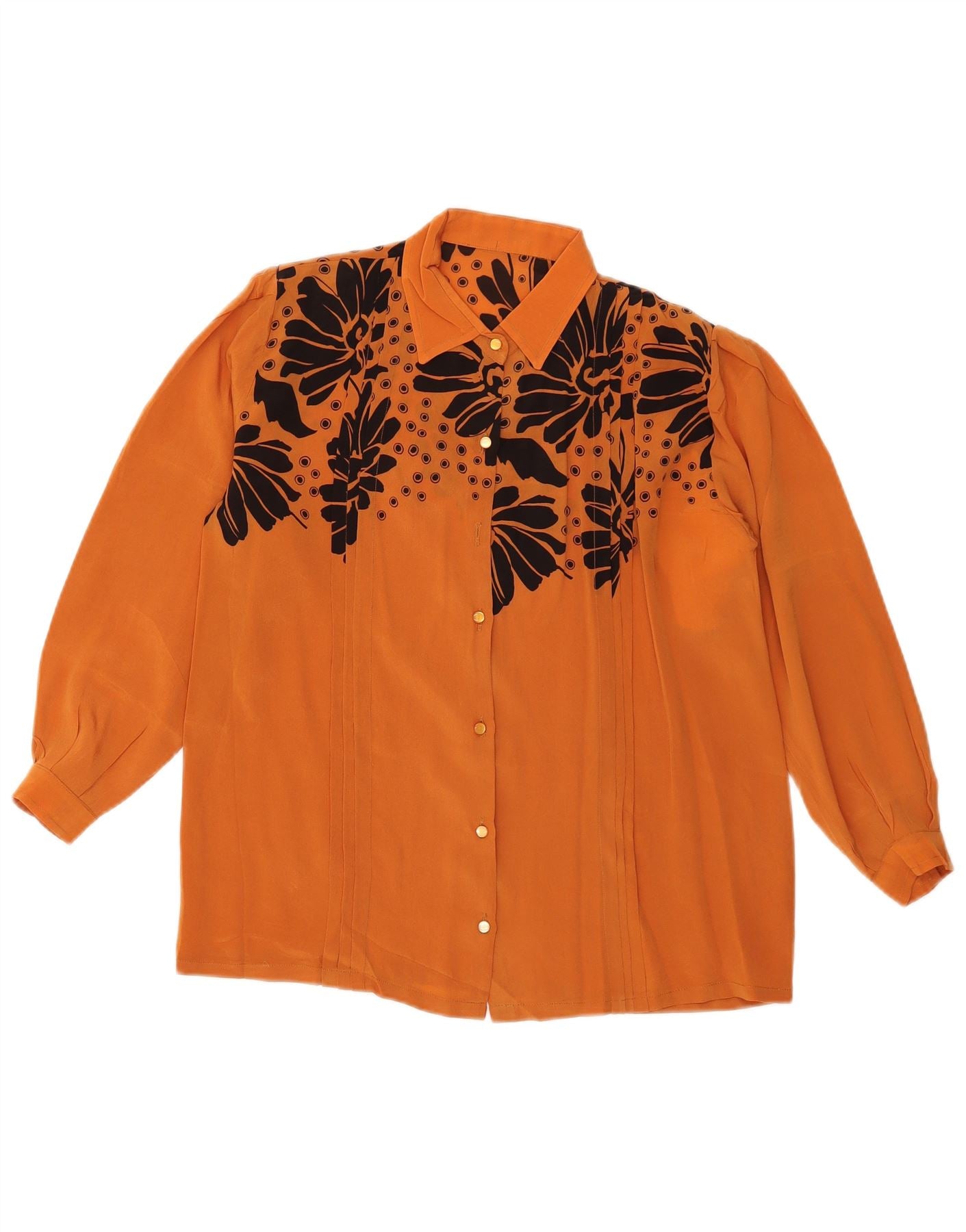 Женская блузка-рубашка VINTAGE UK 16, большой оранжевый цветочный принт