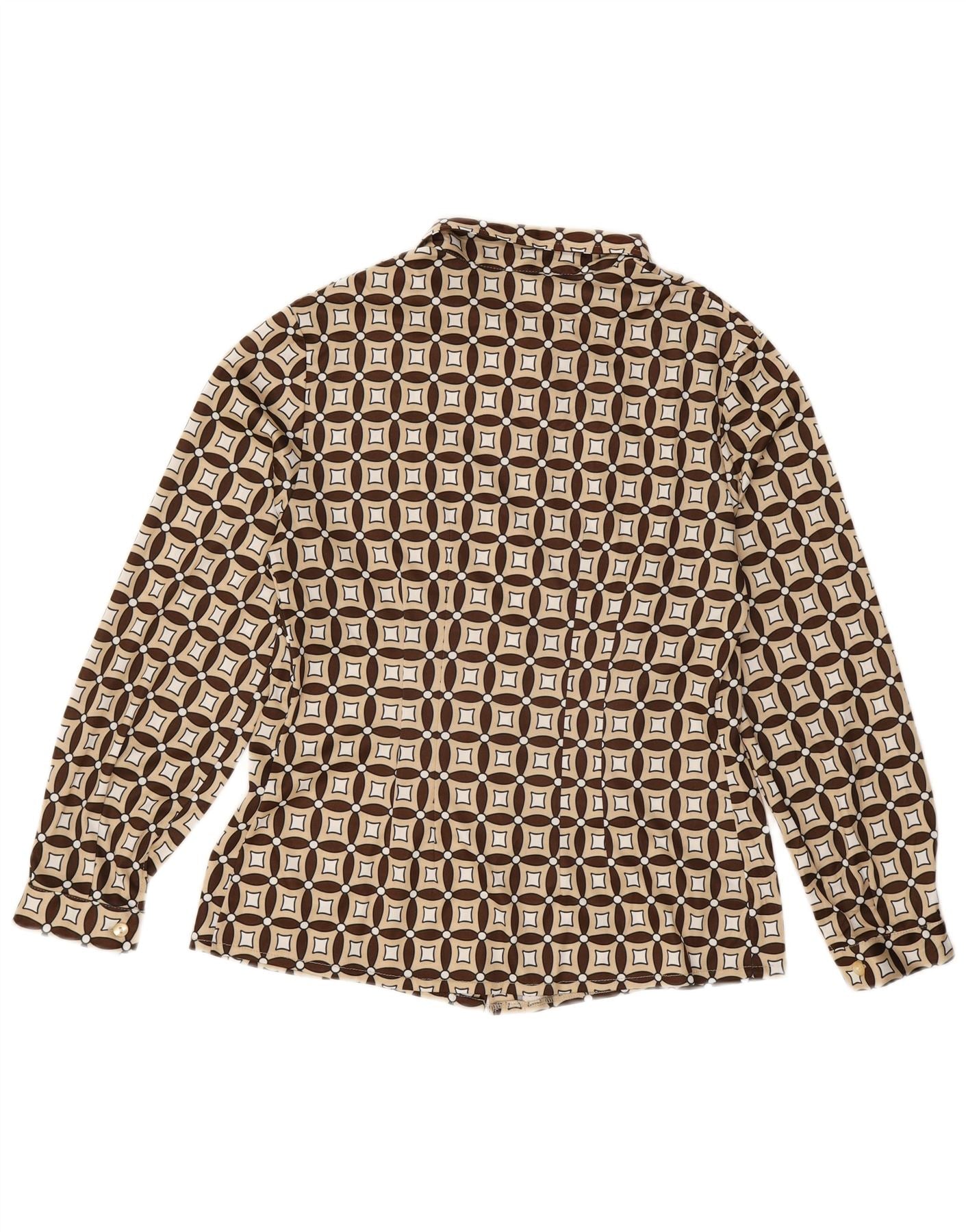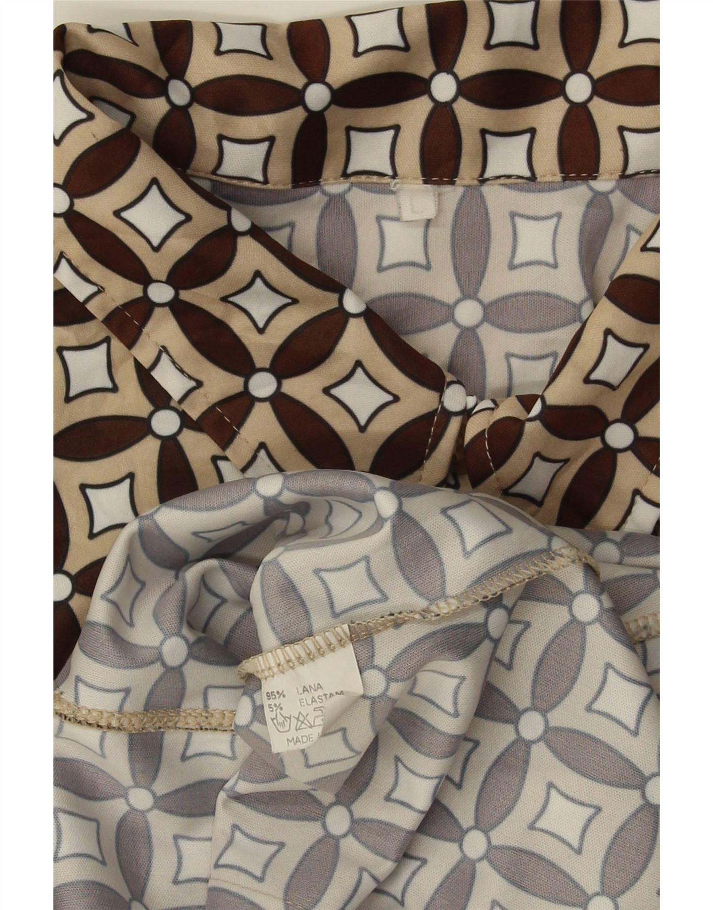 - Описание ИИ: Эта женская блузка-рубашка Vintage изготовлена из мягкой смесовой шерсти, на 85 процентов состоящей из шерсти. Он демонстрирует яркий геометрический узор в бежевых, коричневых и кремовых тонах. Вырез с воротником и длинные рукава создают классическую изысканную структуру. Эта блузка-пуловер классической посадки обеспечивает комфорт и неподвластный времени стиль ретро. Замысловатый узор добавляет визуальный интерес.