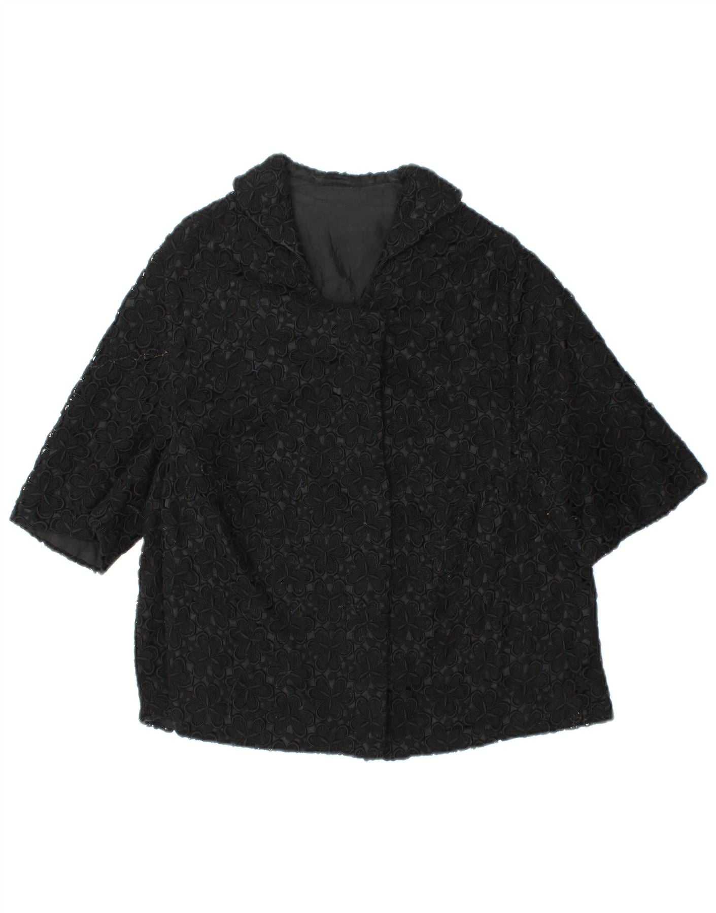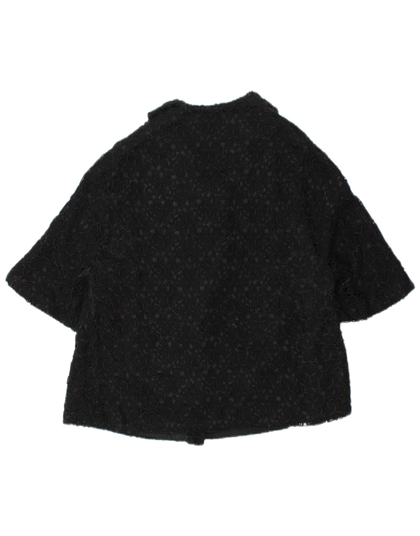 ВИНТАЖНЫЙ женский пиджак с коротким рукавом UK 12, средний черный с цветочным принтом