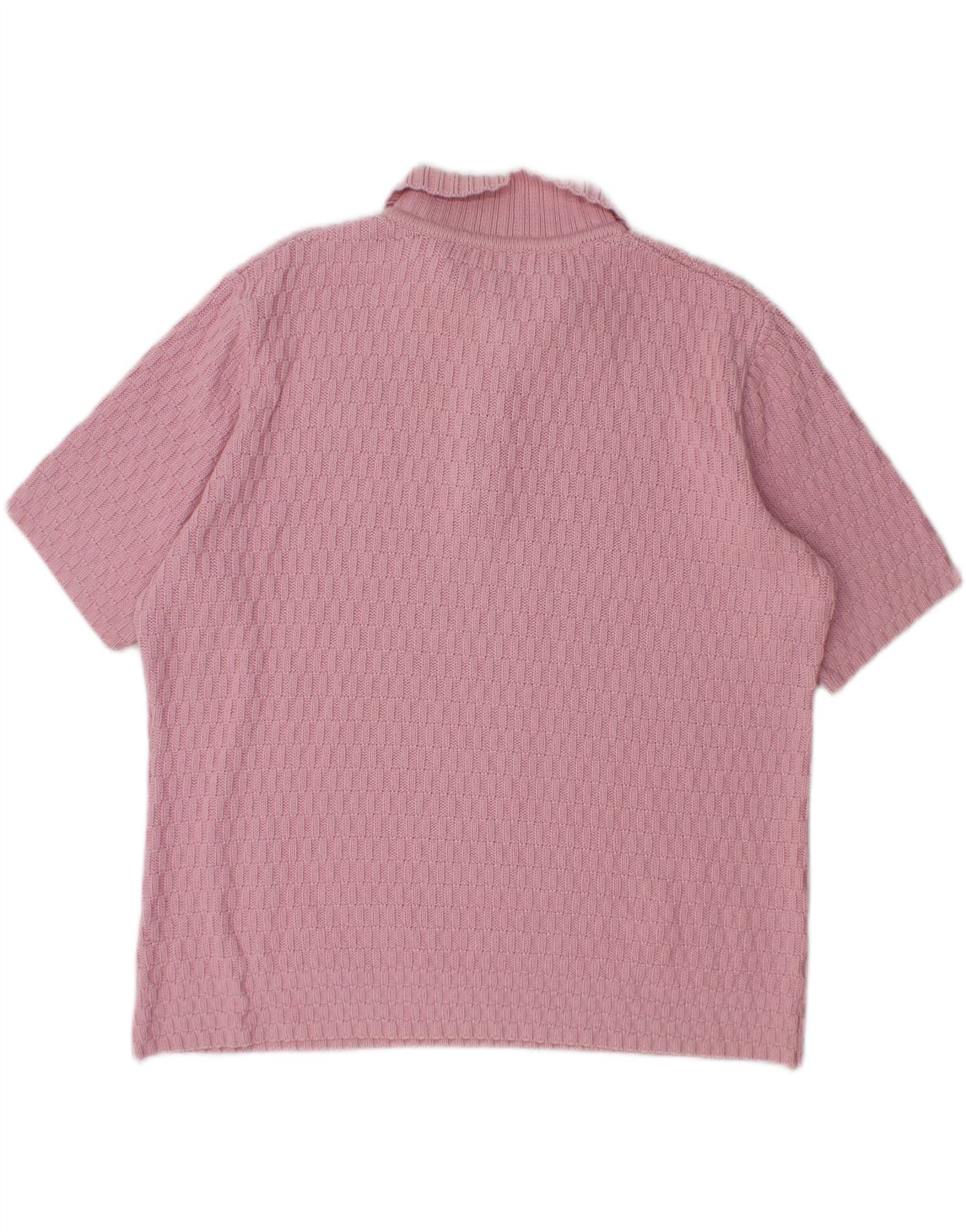 VINTAGE Womens Short Sleeve Polo Neck Jumper Sweater UK 14 Large Pink