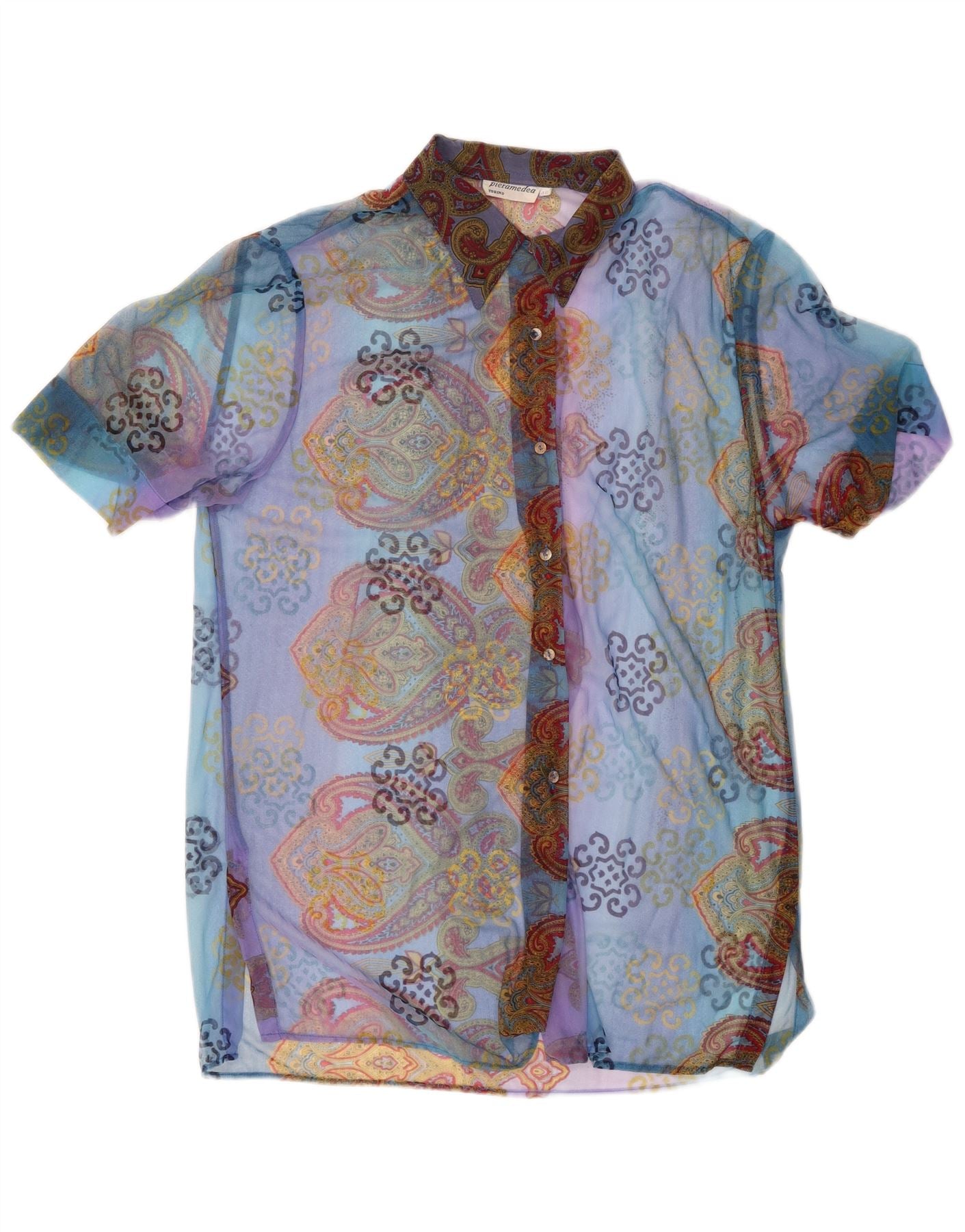 VINTAGE Женская блузка-рубашка с коротким рукавом IT 48 XL Синяя Пейсли