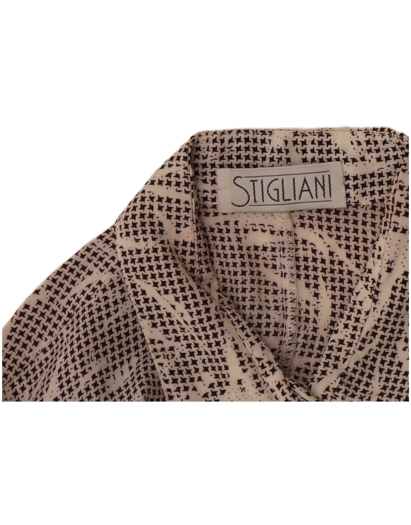 - Описание ИИ: Эта женская рубашка Stigliani изготовлена из легкой тканой ткани кремового белого оттенка. Он имеет яркий геометрический абстрактный узор черного цвета. Вырез с воротником и застежка на пуговицы спереди придают модели классический вид. Короткие рукава и свободный крой обеспечивают комфортное ношение. Это изделие сочетает в себе стиль ретро и современную простоту.