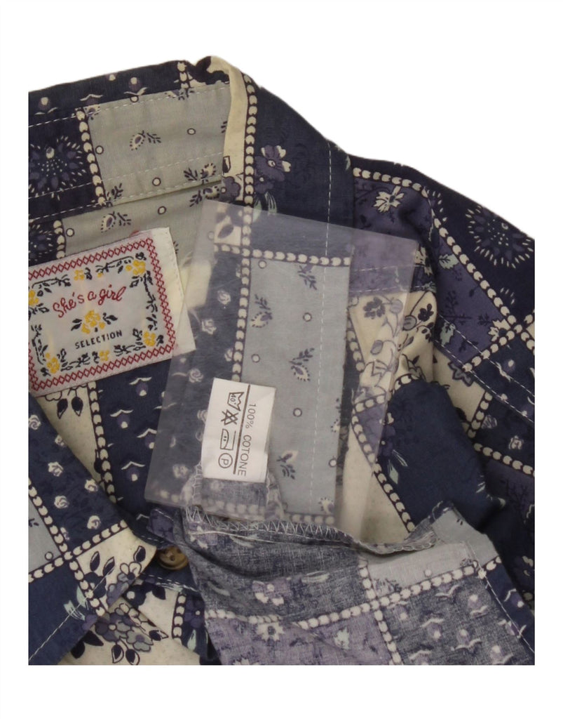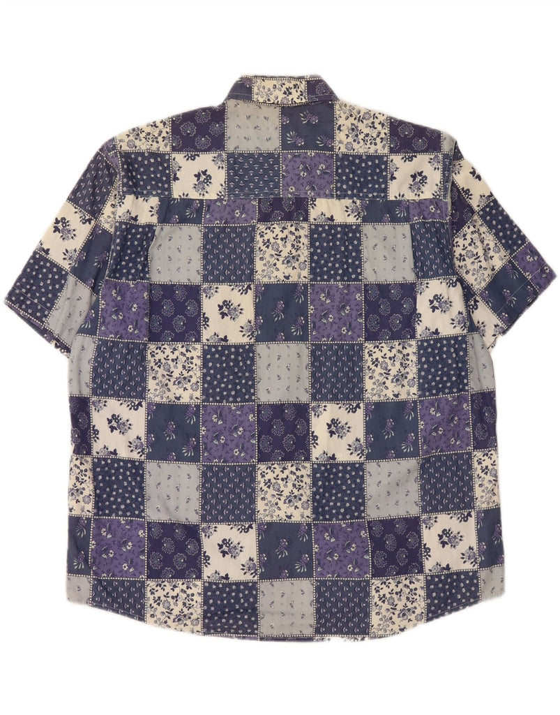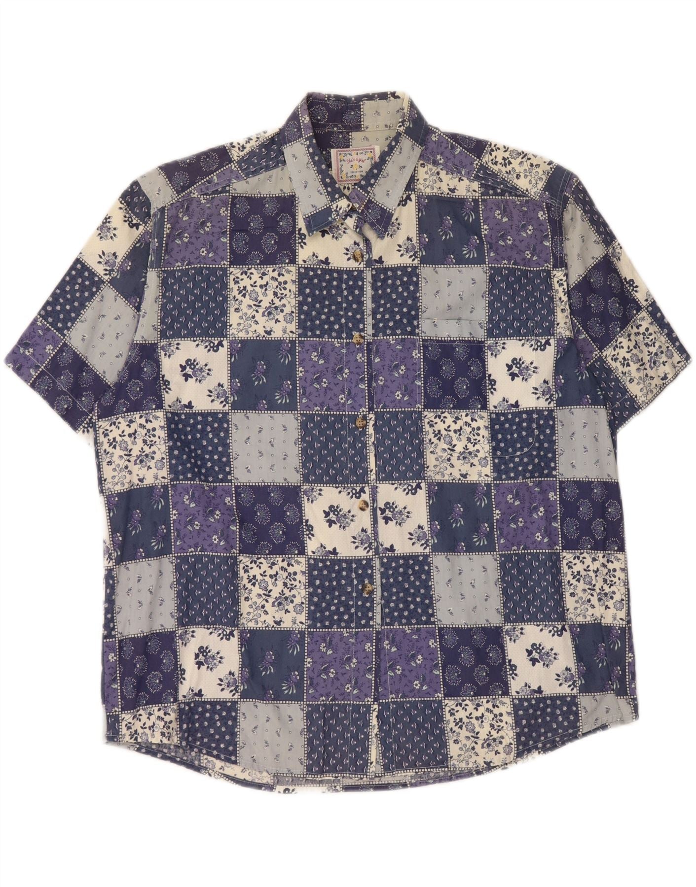 VINTAGE Женская рубашка с коротким рукавом UK 20 2XL Синяя лоскутная хлопковая ткань