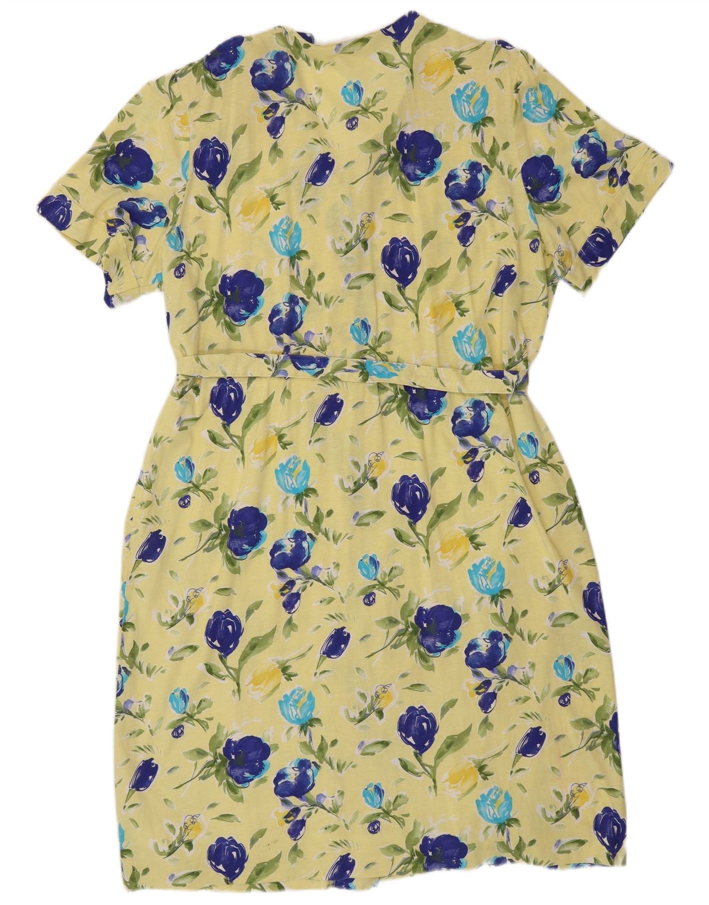 Home > Женский > Депоп Одежда > ВИНТАЖНОЕ женское платье-рубашка с короткими рукавами, Великобритания, 18 XL, желтое, хлопковое с цветочным принтом