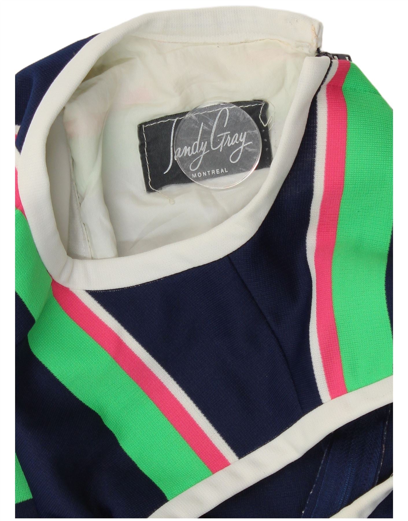 Винтажное женское платье А-силуэта без рукавов UK 12, средний темно-синий в полоску
