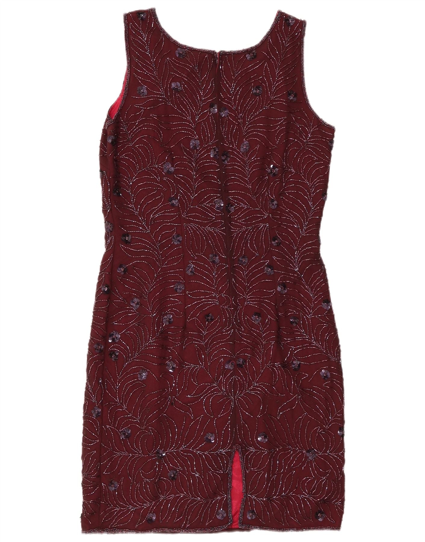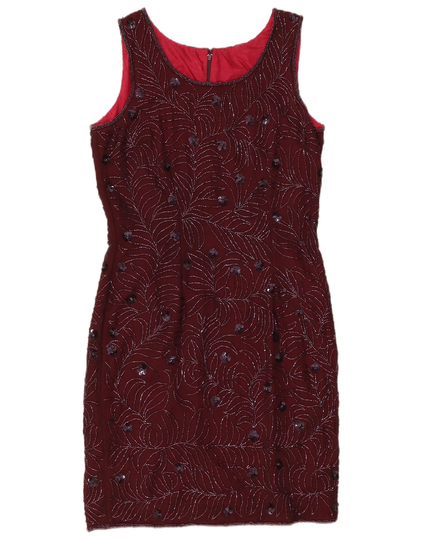 ВИНТАЖНОЕ женское платье-футляр без рукавов, Великобритания 12, средний бордовый с цветочным принтом