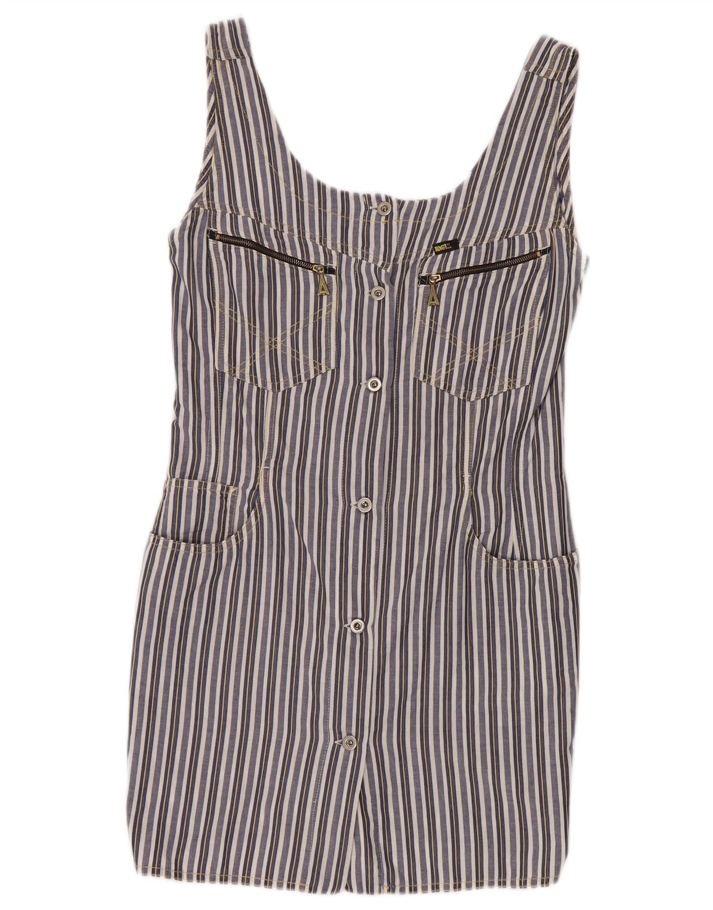 ВИНТАЖНОЕ женское платье-футляр без рукавов UK 8 маленькое темно-синее в полоску