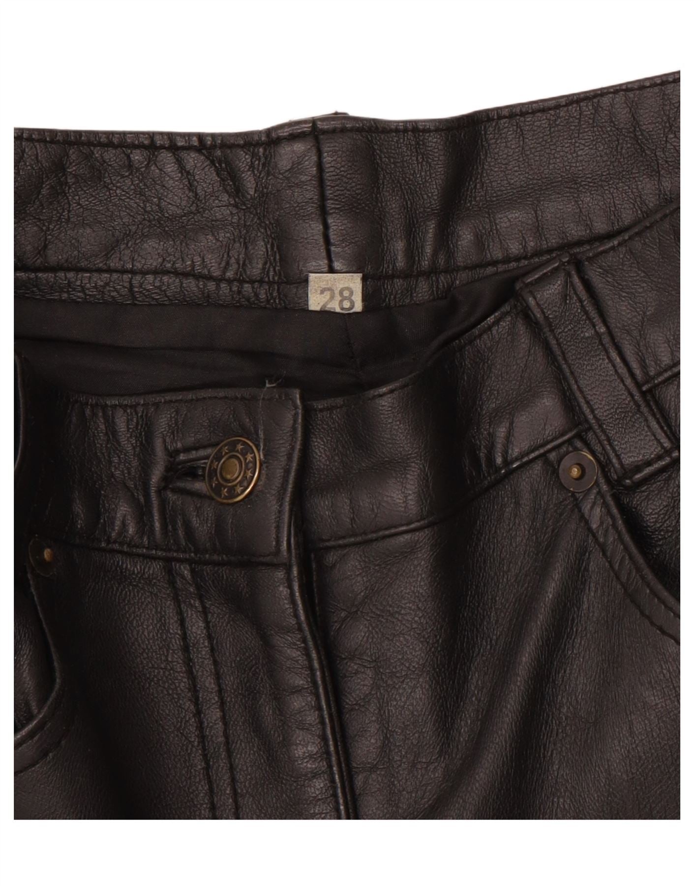 ВИНТАЖНЫЕ женские узкие кожаные брюки W28 L30 черные