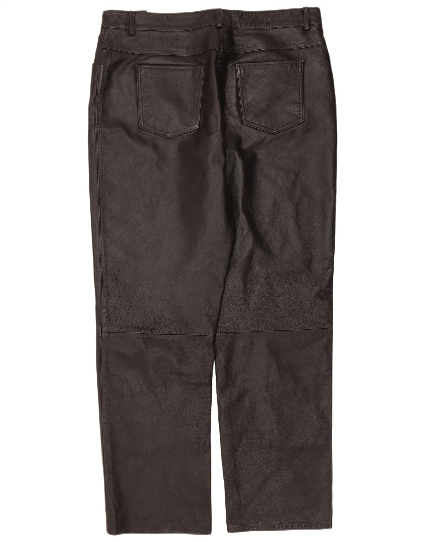 Винтажные женские прямые кожаные брюки IT 46, большие W34 L30, черные кожаные