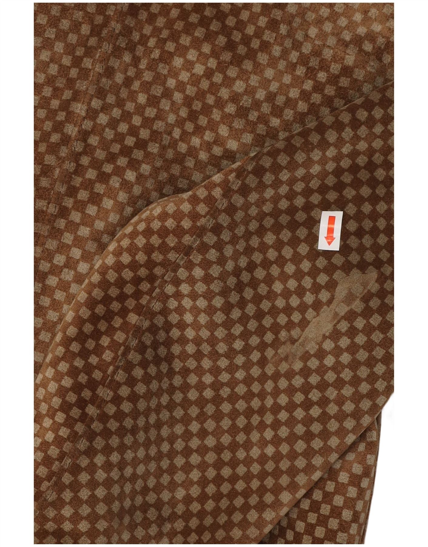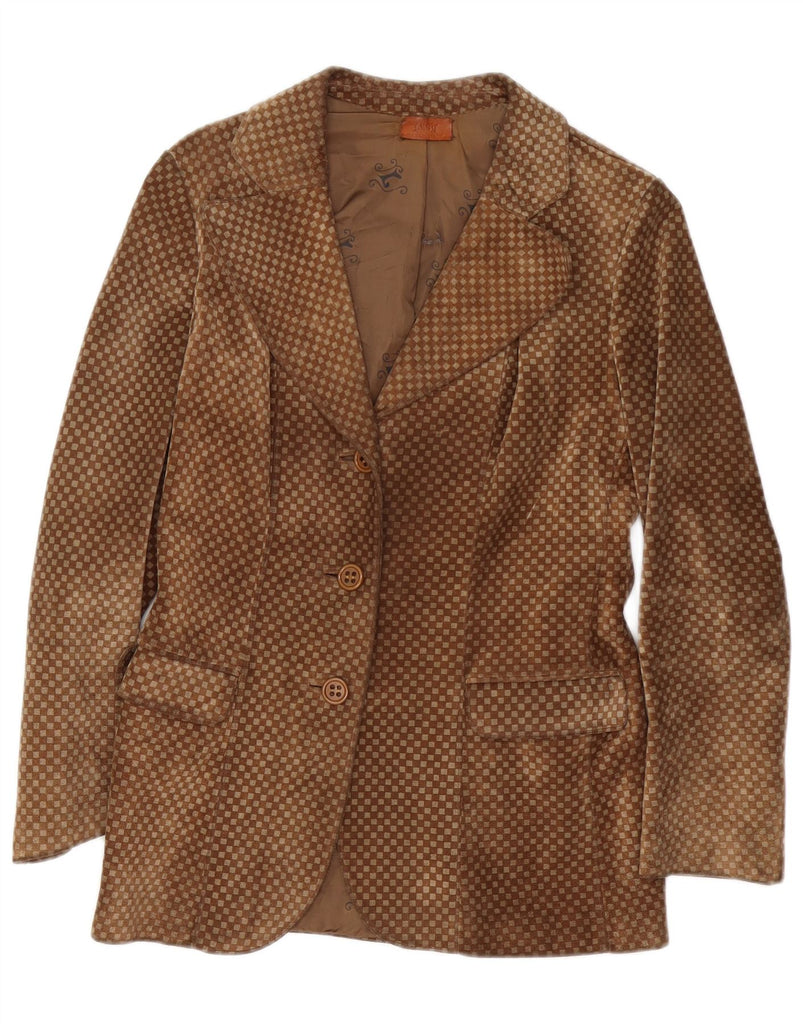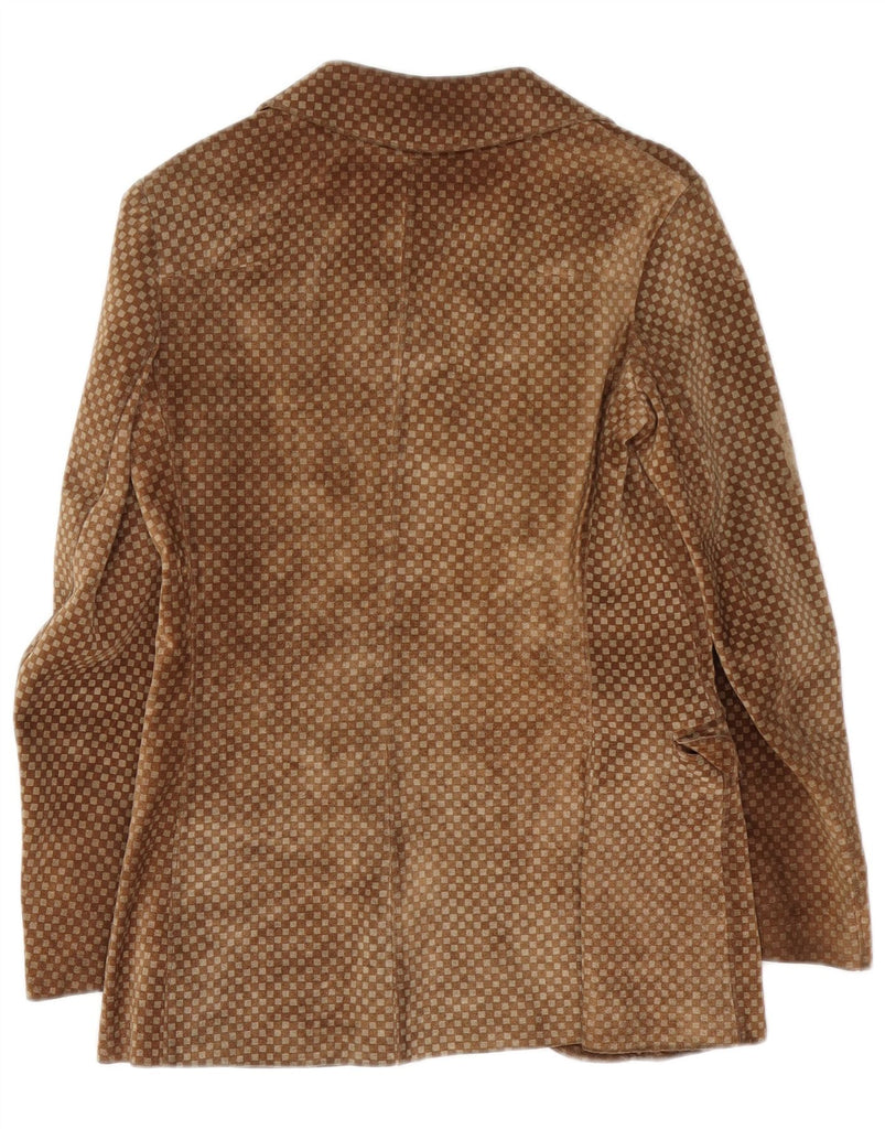 ВИНТАЖНЫЙ женский замшевый пиджак на 3 пуговицах, UK 10, маленький коричневый с геометрическим рисунком