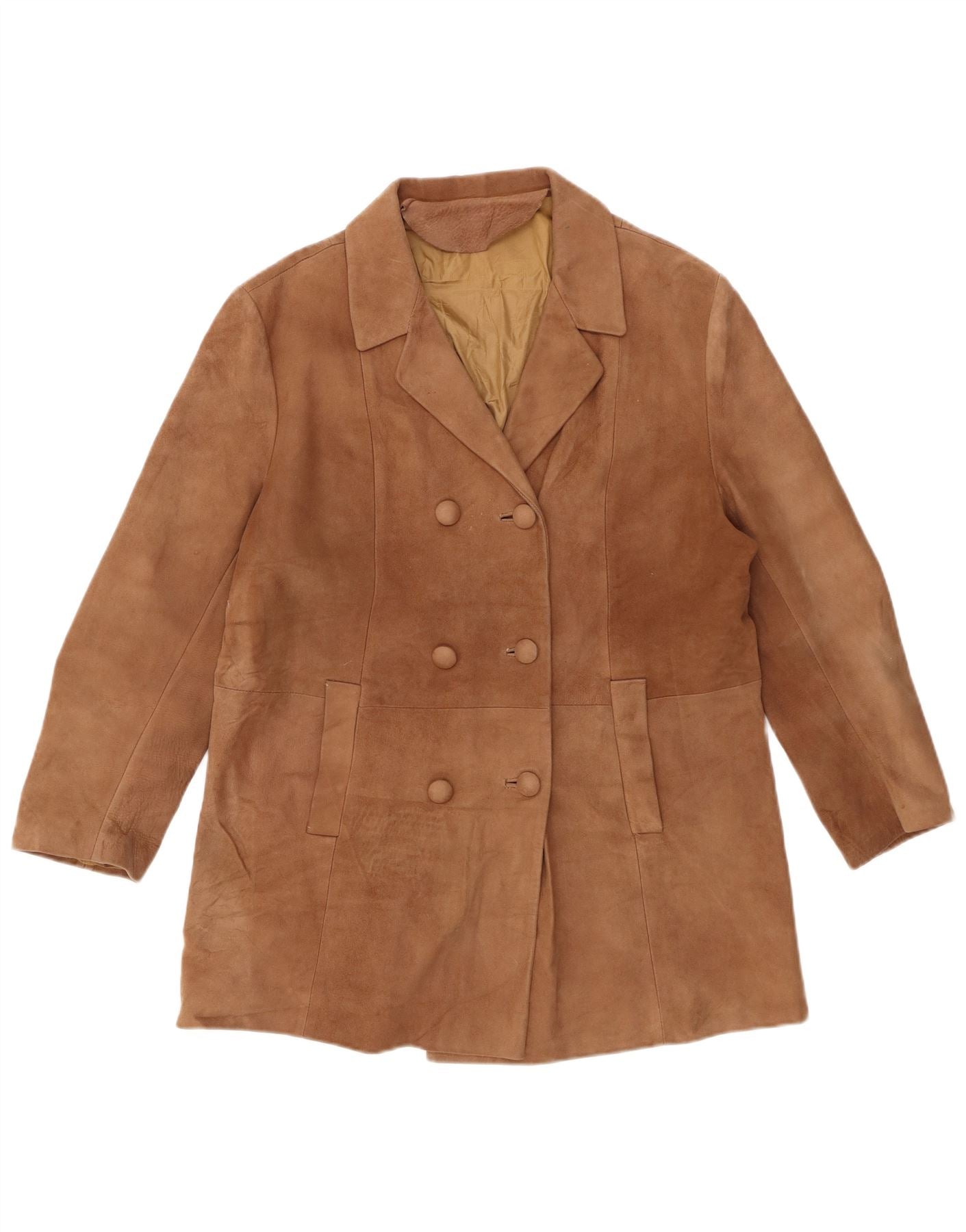 ВИНТАЖНОЕ женское замшевое двубортное пальто EU 50 3XL коричневое кожаное