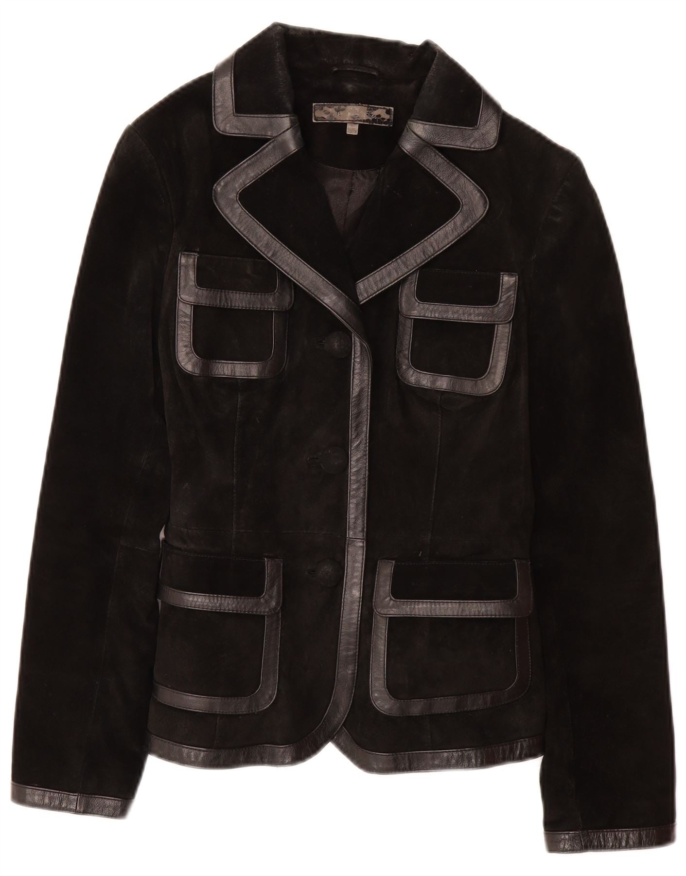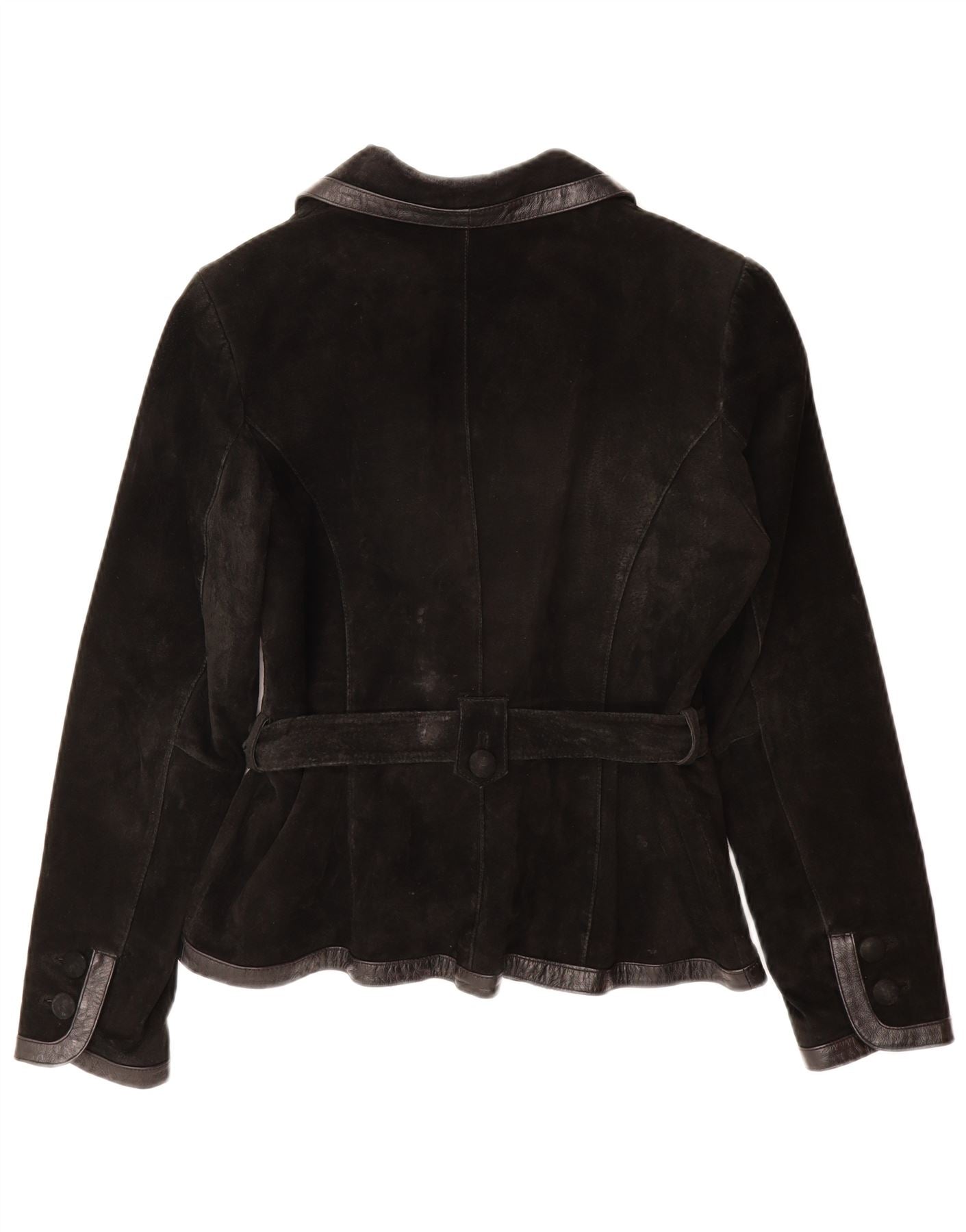 ВИНТАЖНАЯ Женская Замшевая Куртка UK 12 Средний Черный Кожаный