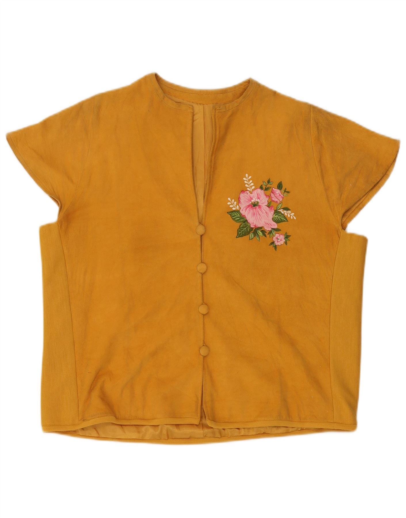 VINTAGE Женская замшевая блузка-рубашка с коротким рукавом, Великобритания 16, большой желтый цветочный принт