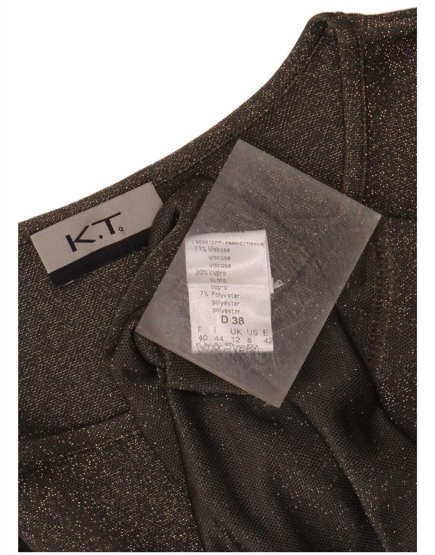 ВИНТАЖНЫЙ женский топ с длинным рукавом UK 12, средний зеленый вискоза с крапинками