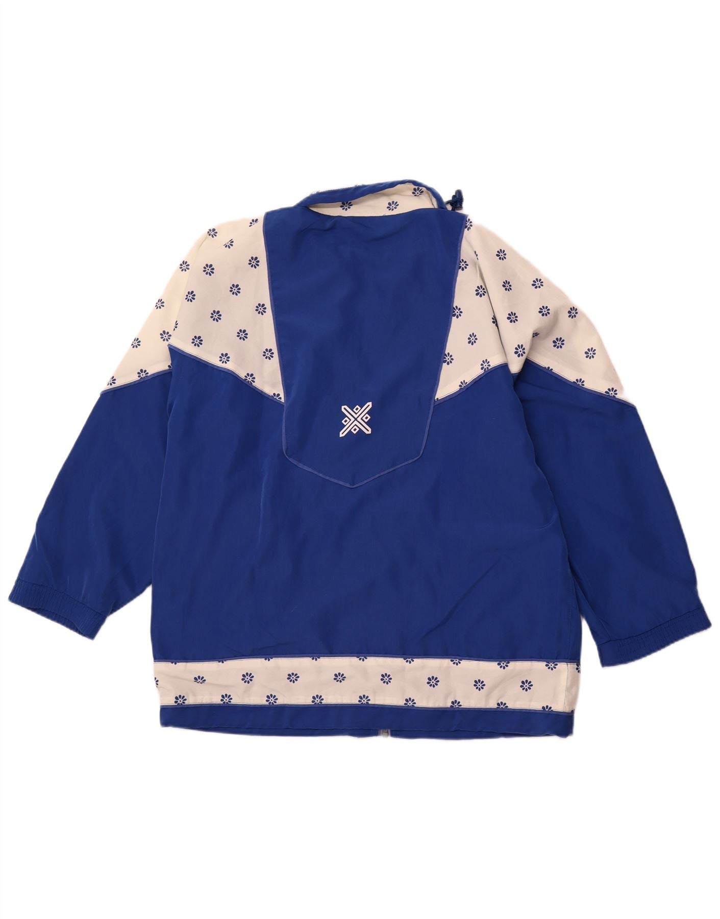 - Описание ИИ: Мужская верхняя куртка от винтажного спортивного костюма изготовлена из тканого синтетического материала. Он украшен ярким сине-белым цветочным узором. Вырез с воротником и застежка-молния создают классическую структуру спортивной куртки. Длинные рукава и стандартный крой обеспечивают комфортное ношение. Вышитые акценты и карманы добавляют функциональных деталей. Эта куртка в стиле ретро дышащая и идеально подходит для активных занятий.
