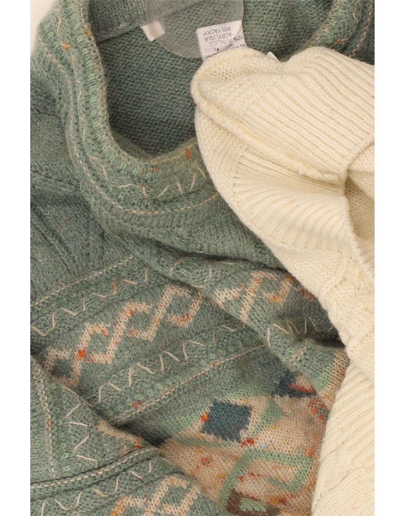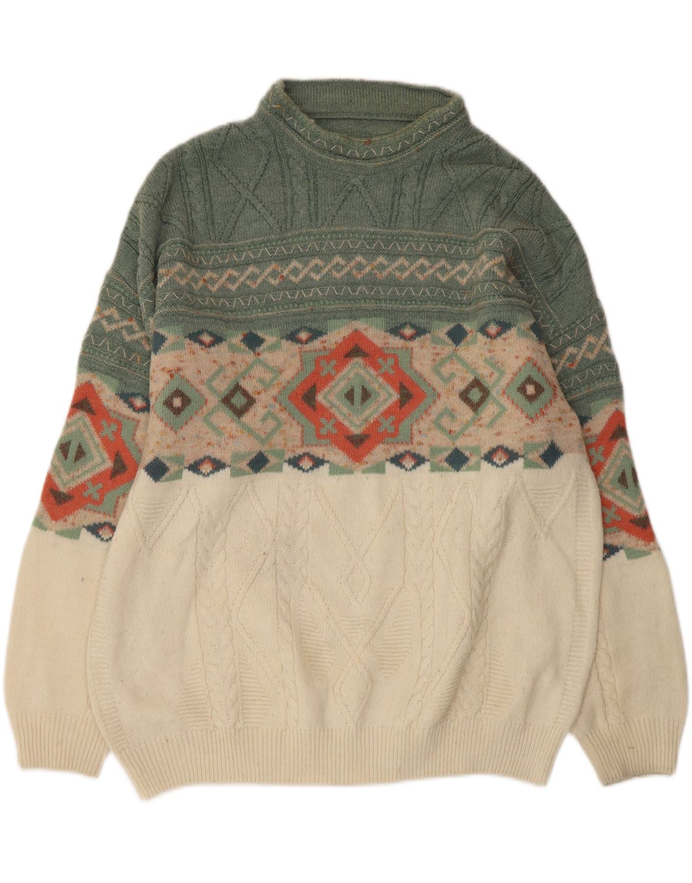 ВИНТАЖНЫЙ женский джемпер с высоким воротником, Великобритания, зеленый цвет Fair Isle, шерсть 18 XL