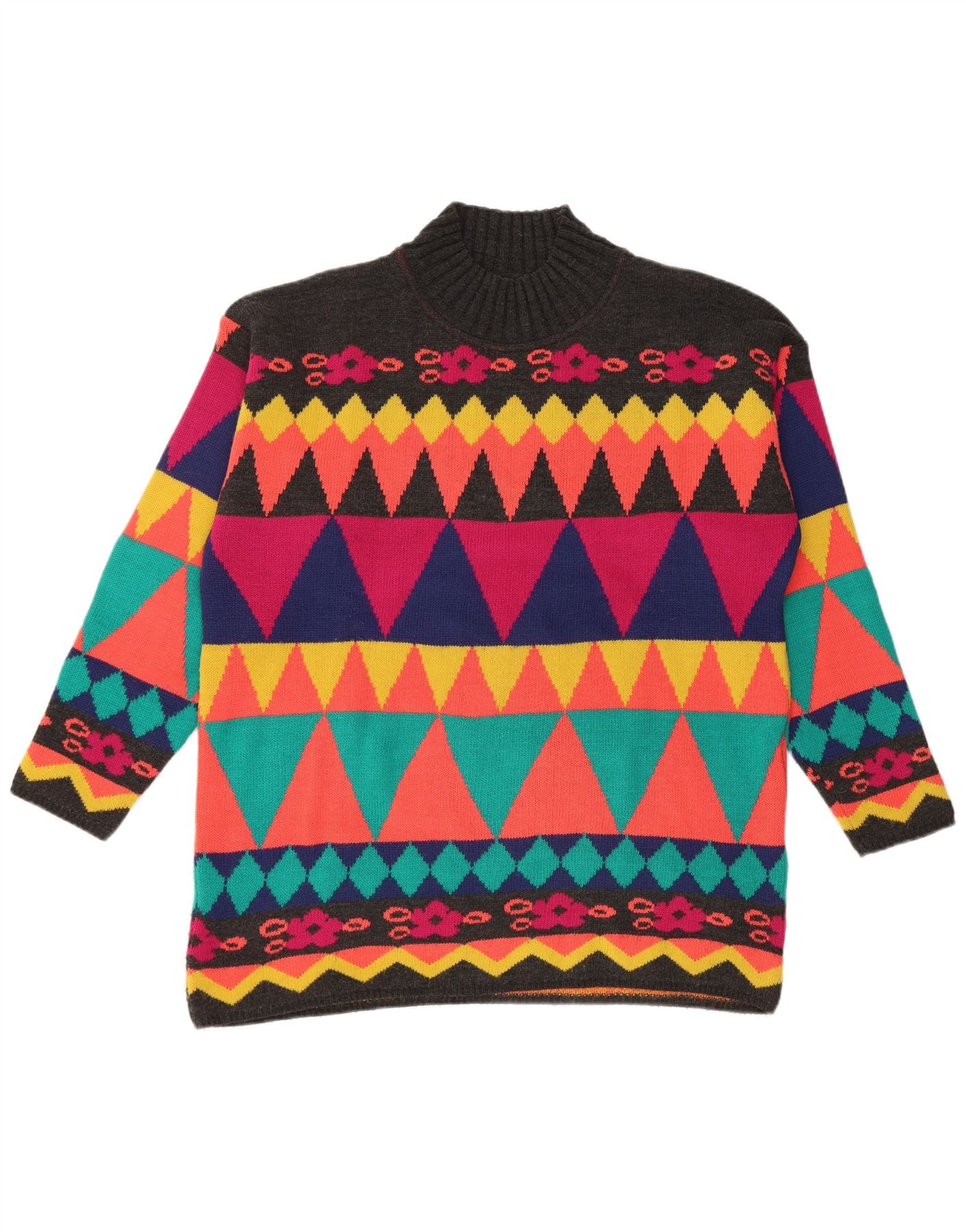 ВИНТАЖНЫЙ женский джемпер с высоким воротником, Великобритания, 18 XL, разноцветный с геометрическим узором