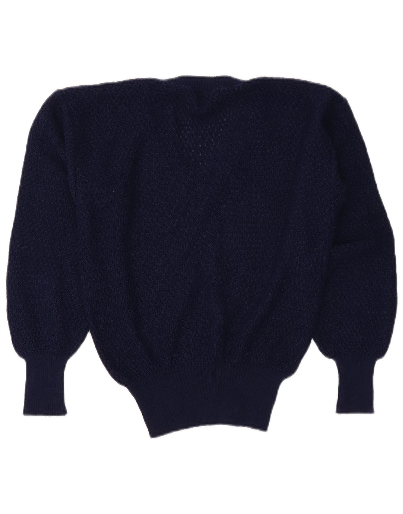 VINTAGE Женский джемпер с V-образным вырезом IT 46 Большой Темно-Синий Акрил