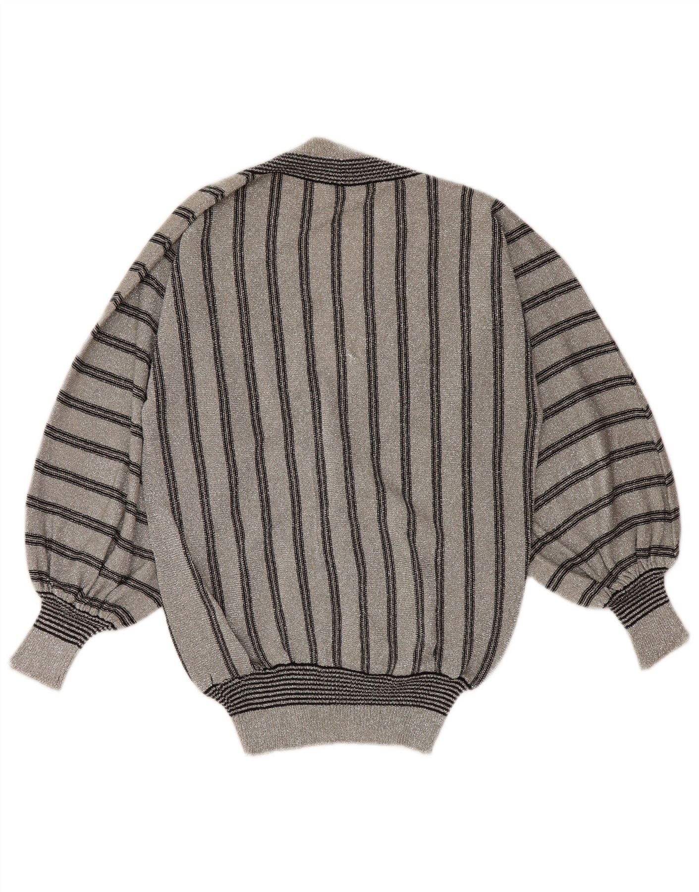 ВИНТАЖНЫЙ женский джемпер с v-образным вырезом, Великобритания 12, средний серый в полоску, синтетический