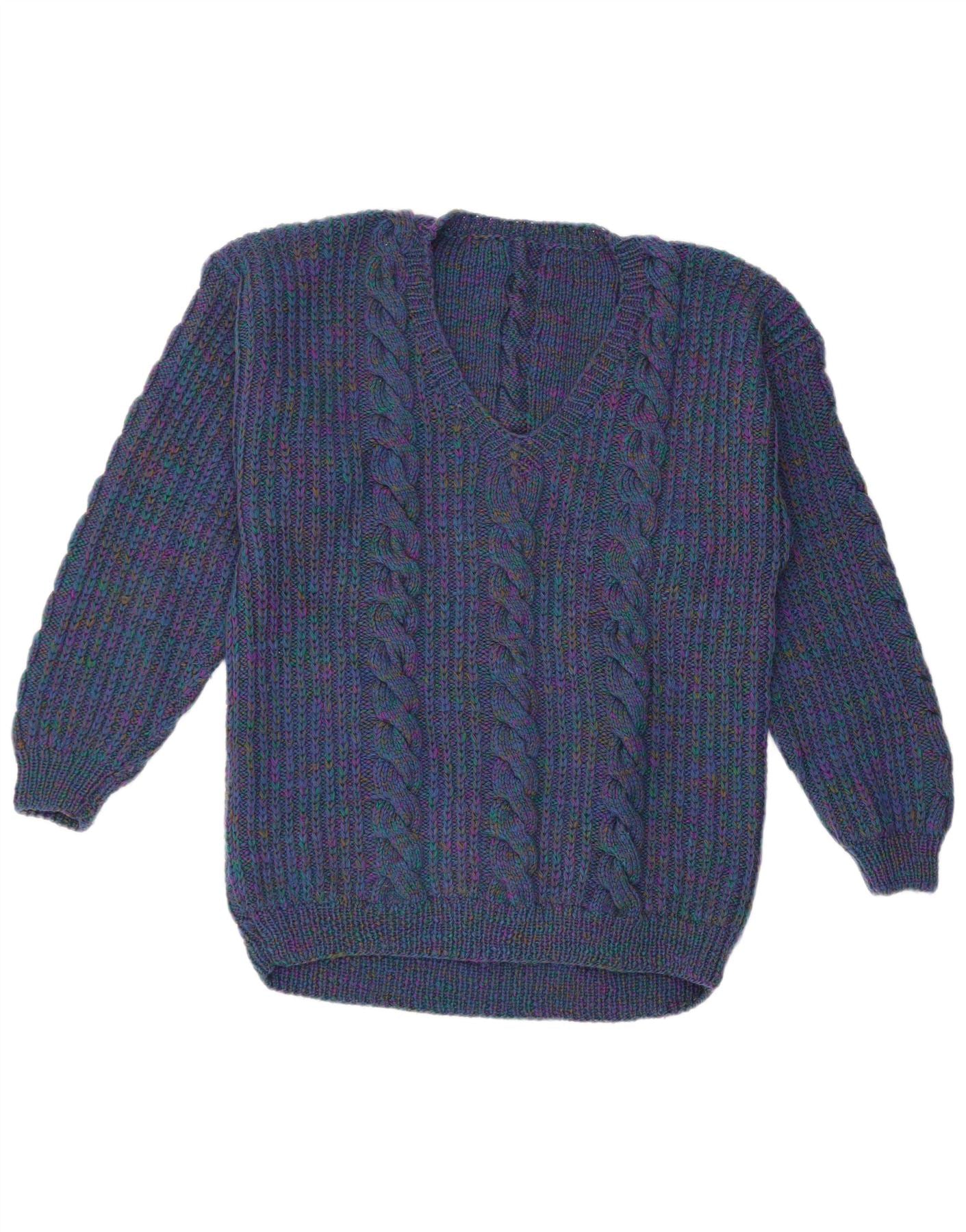 ВИНТАЖНЫЙ женский джемпер с v-образным вырезом UK 14, большой темно-синий в крапинку