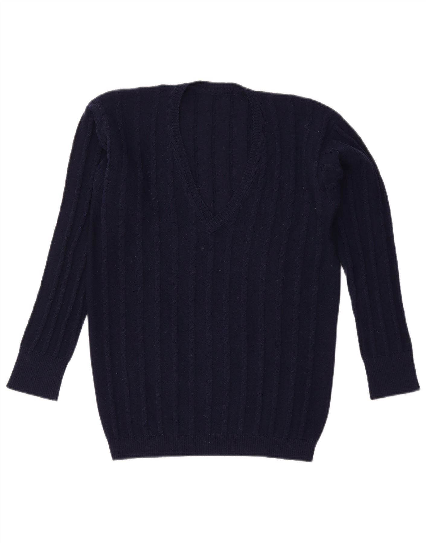 ВИНТАЖНЫЙ женский джемпер с v-образным вырезом, Великобритания 16, большой темно-синий