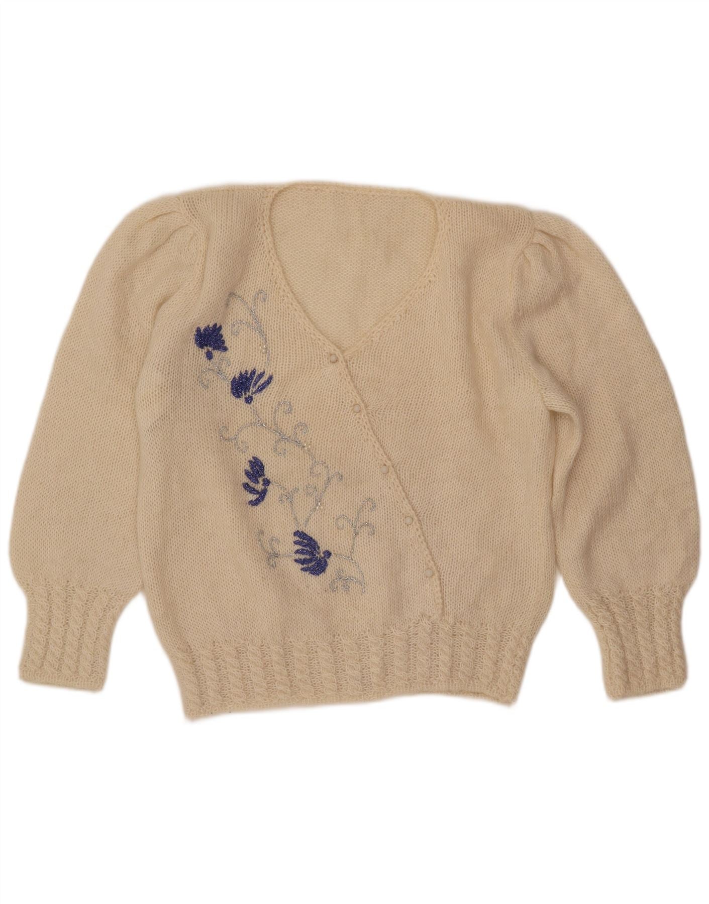 ВИНТАЖНЫЙ женский джемпер с v-образным вырезом, Великобритания 16, большой белый с цветочным принтом