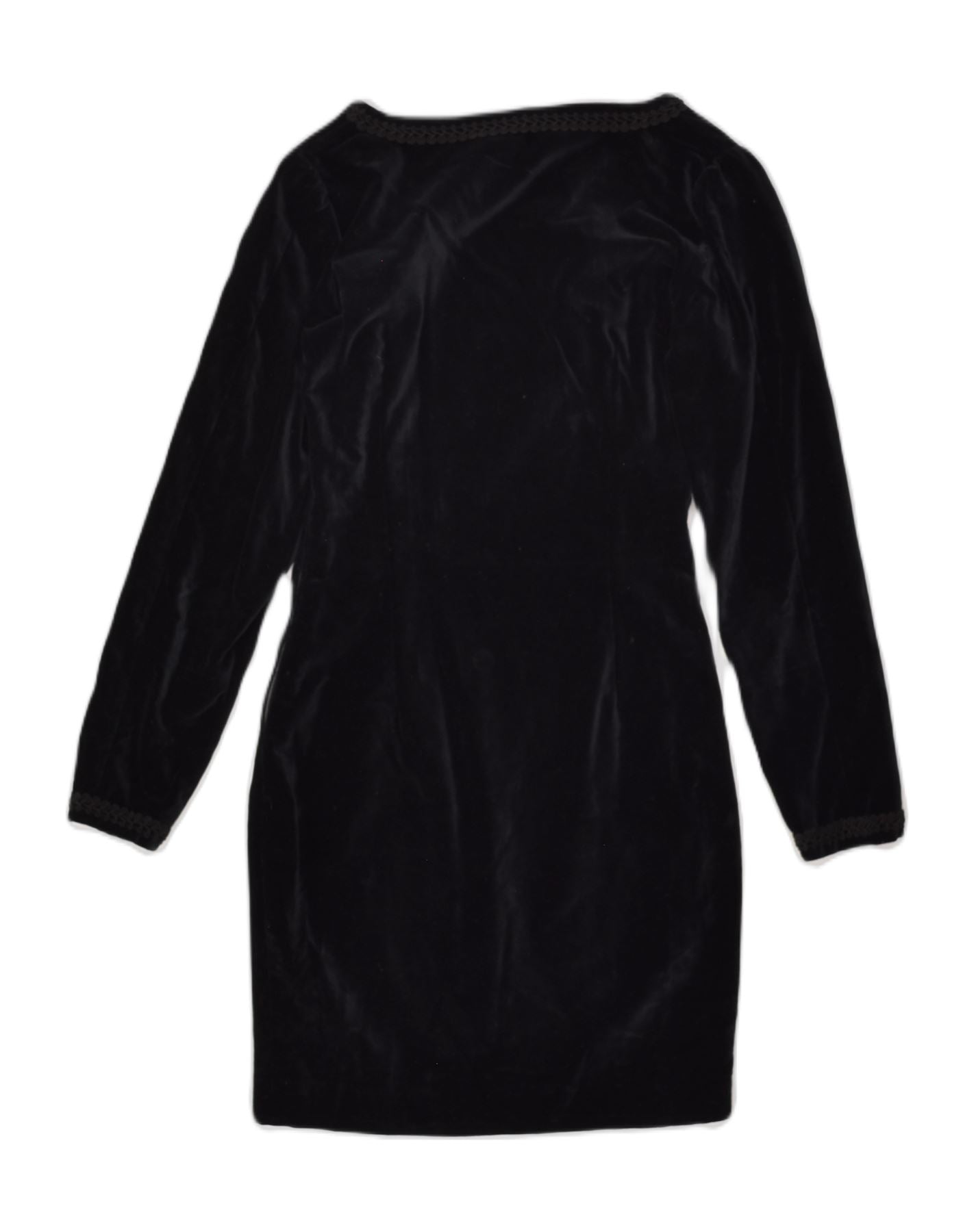 VINTAGE Womens Velour Long Sleeve Bodycon Dress UK 10 Small Black