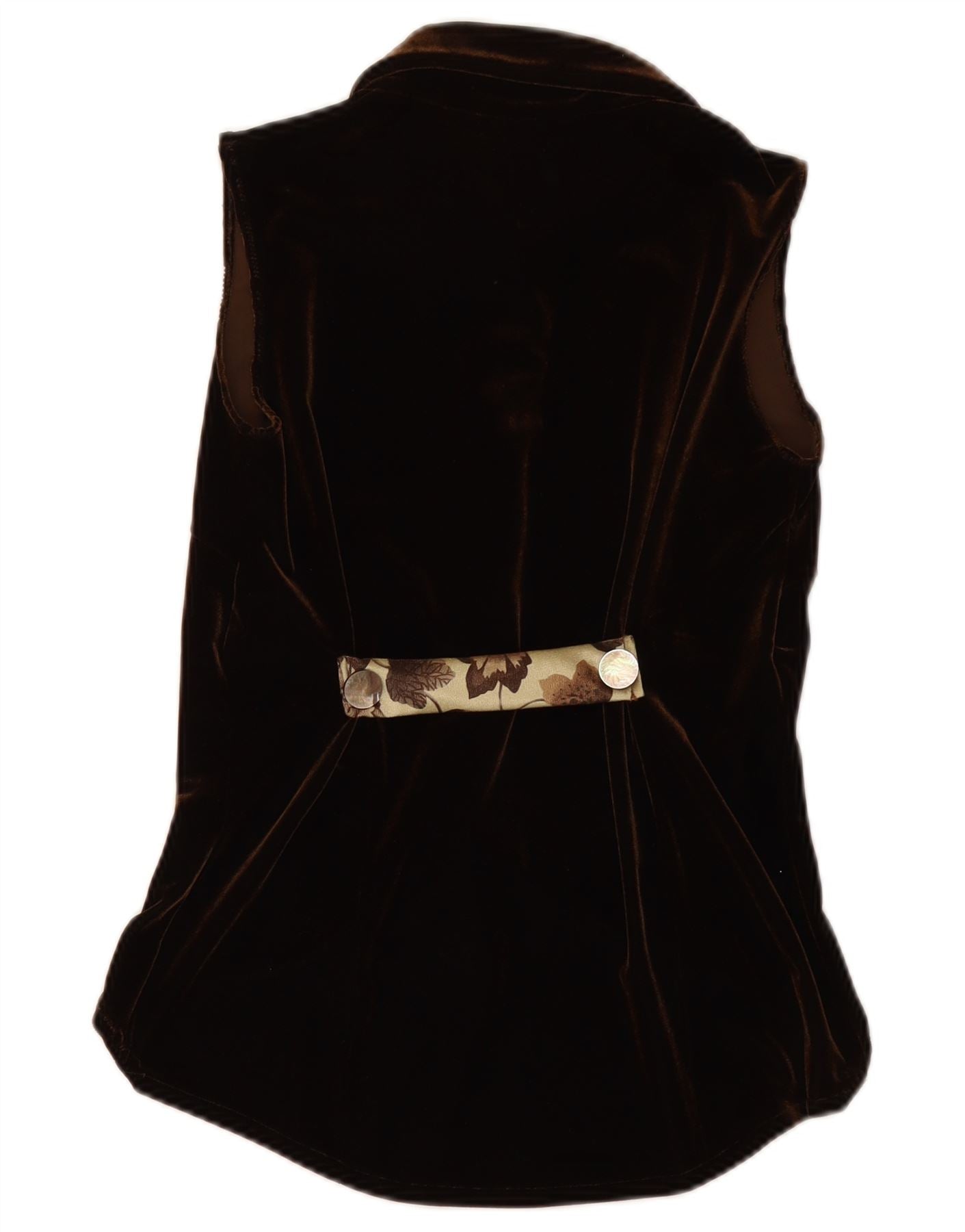 ВИНТАЖНАЯ Женская велюровая блузка-рубашка без рукавов, Великобритания 12, средний коричневый цвет с цветочным принтом