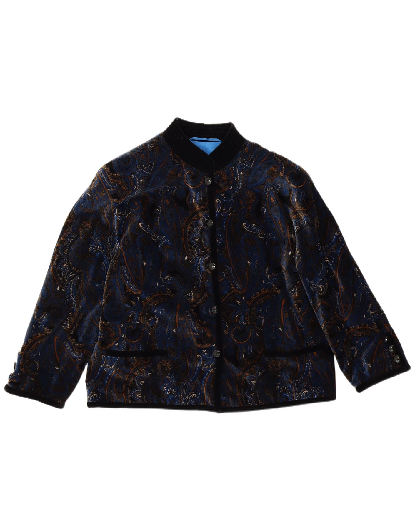 ВИНТАЖНЫЙ женский бархатный пиджак на 5 пуговицах, Великобритания 14, большой синий с узором пейсли