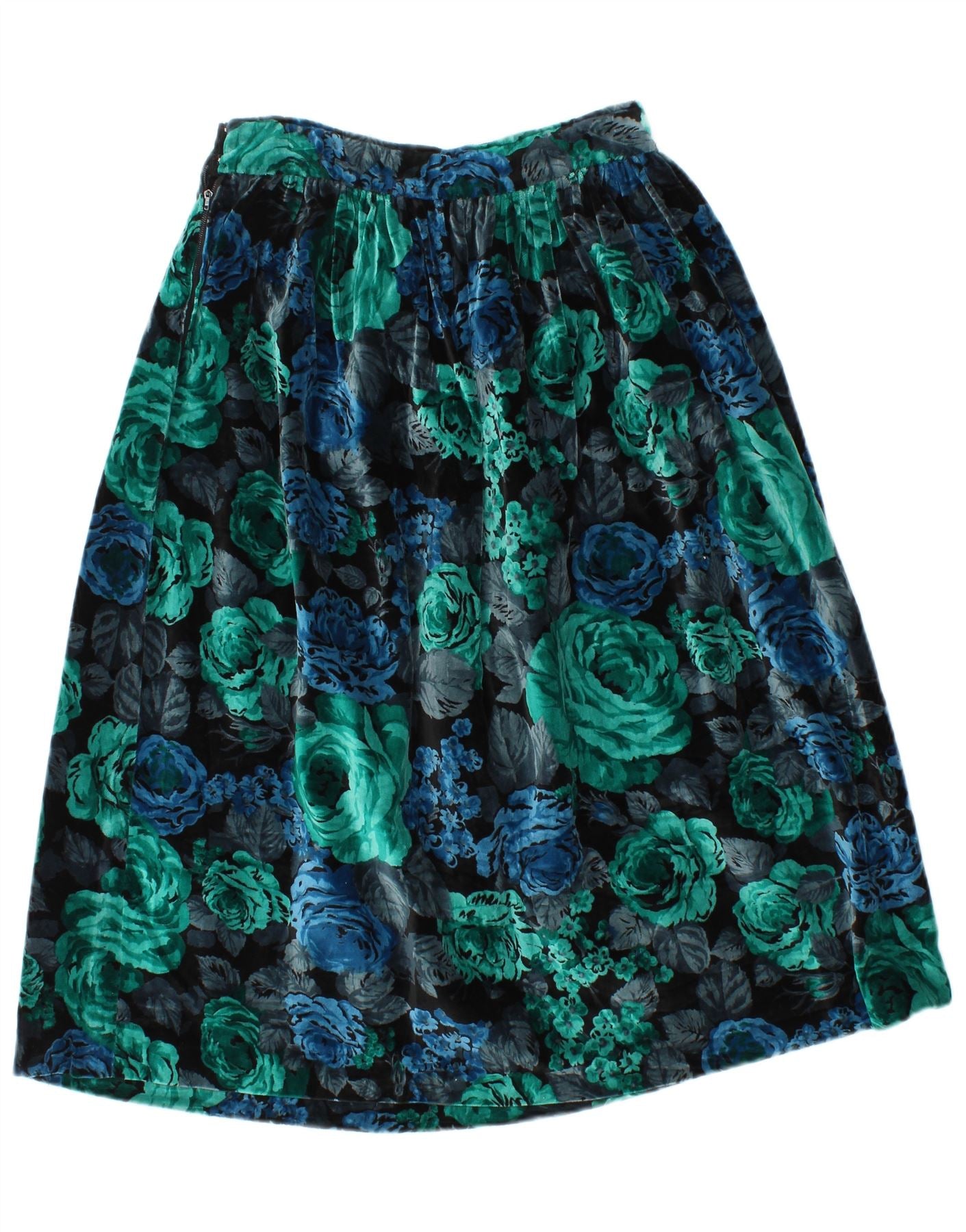 Винтажная женская бархатная юбка-трапеция W28, средний разноцветный цветочный принт