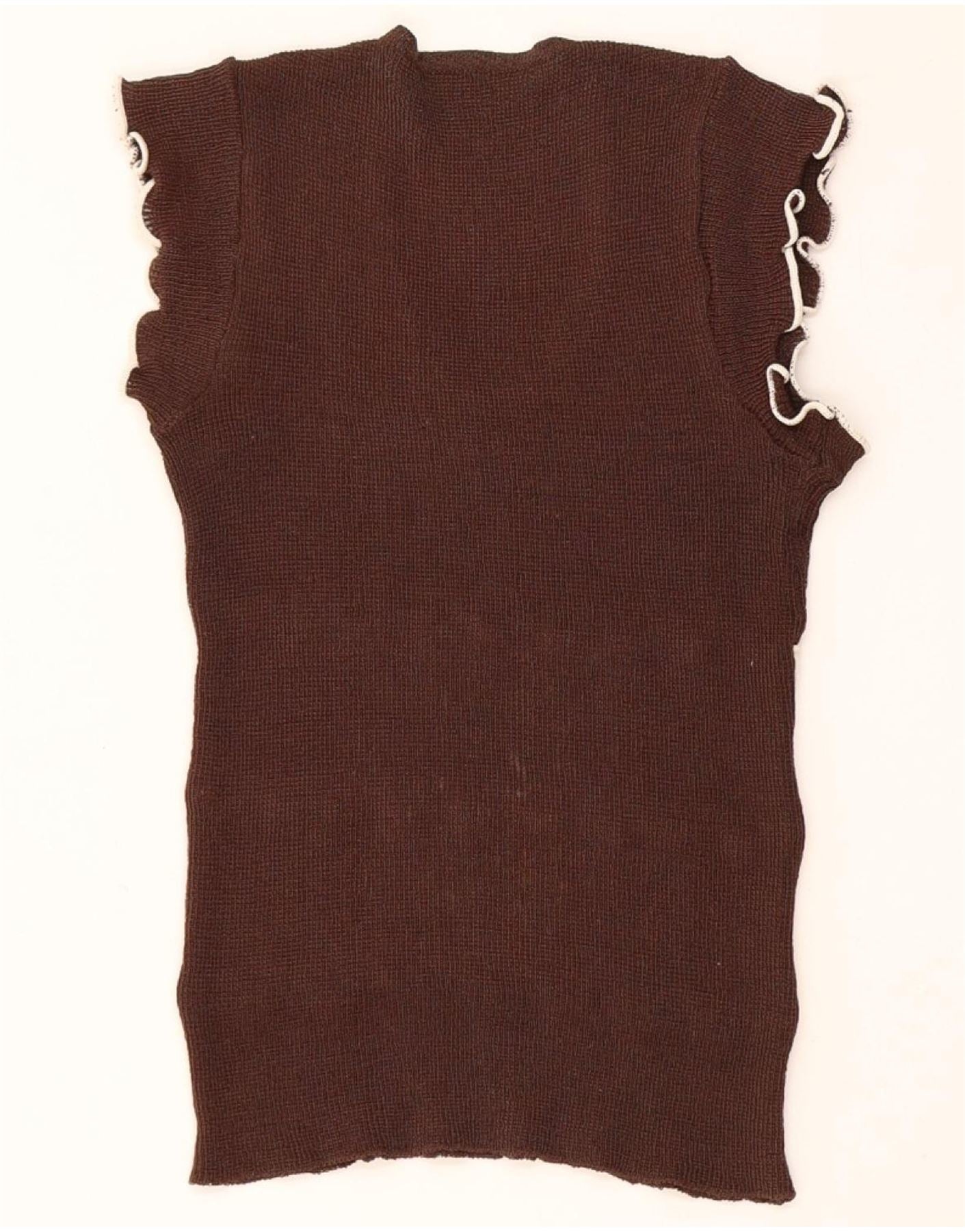 Винтажная женская майка-майка UK 8, маленькая коричневая с цветными блоками