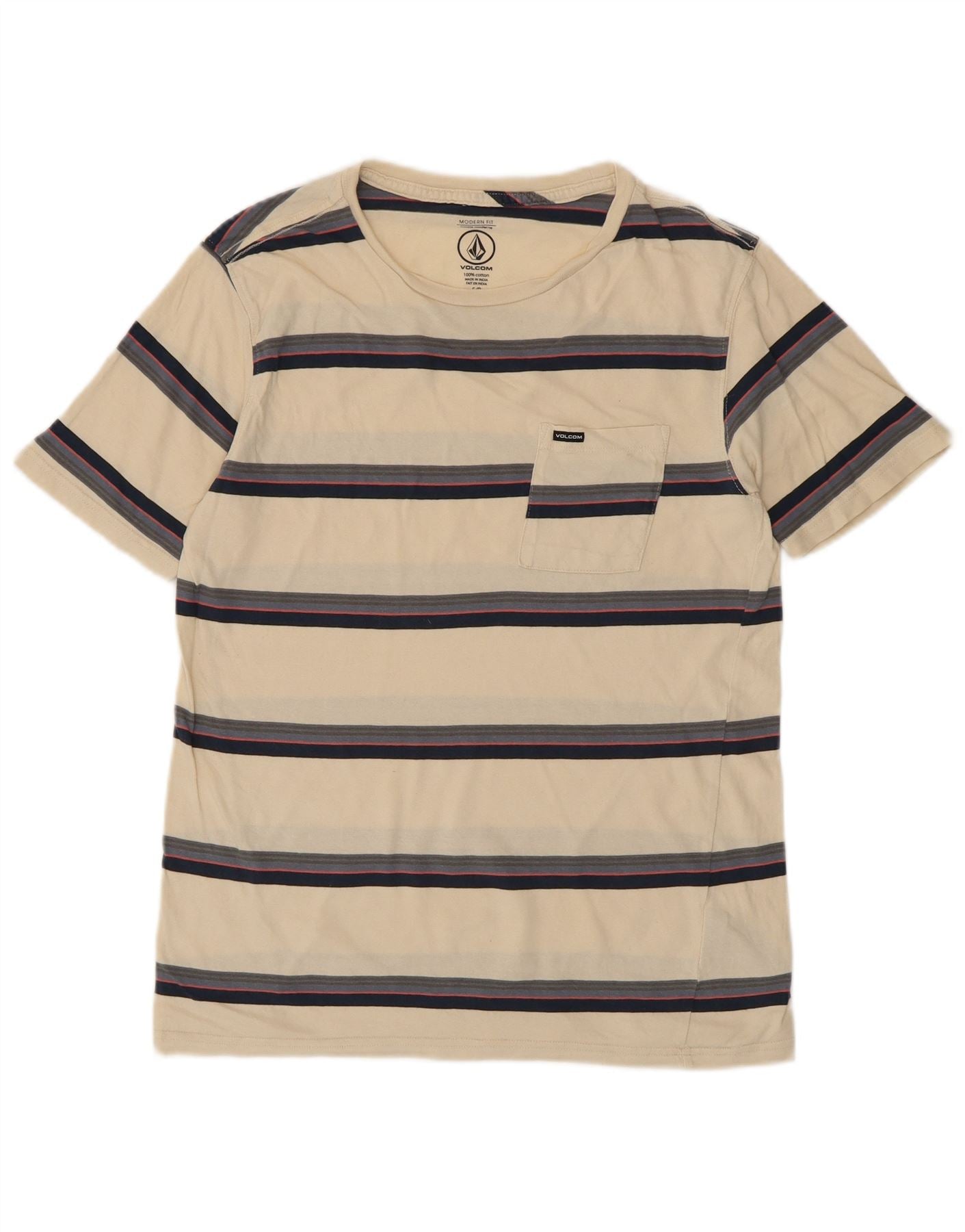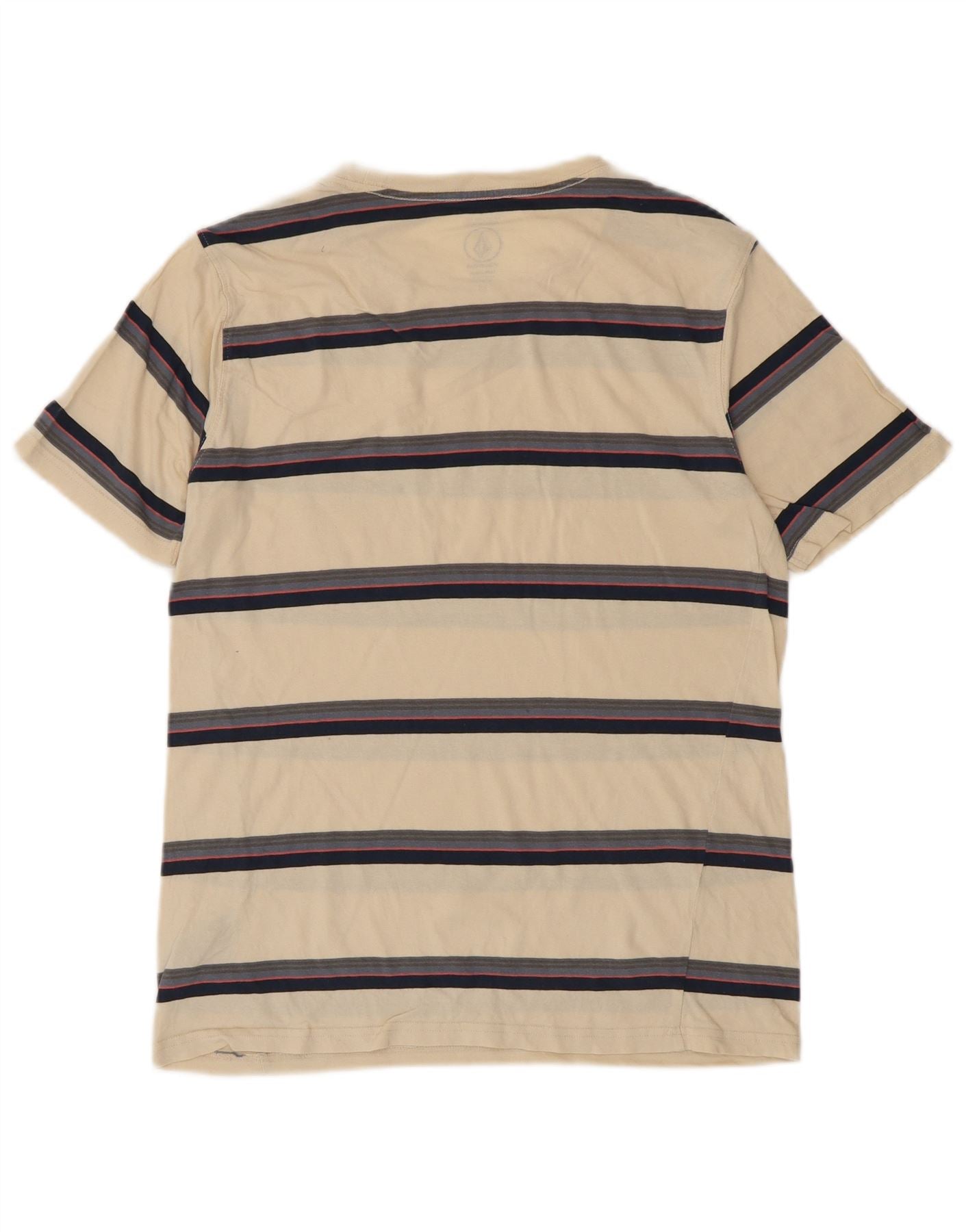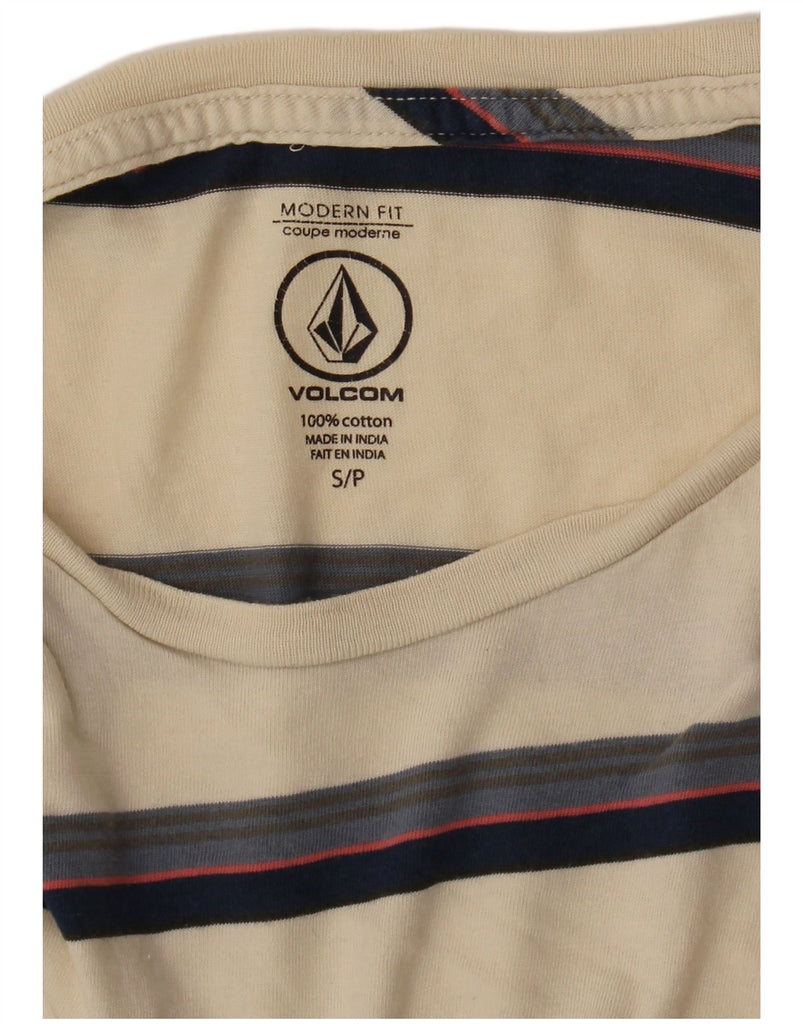 VOLCOM Mens Modern Fit T-Shirt Top Small Beige Striped Cotton
