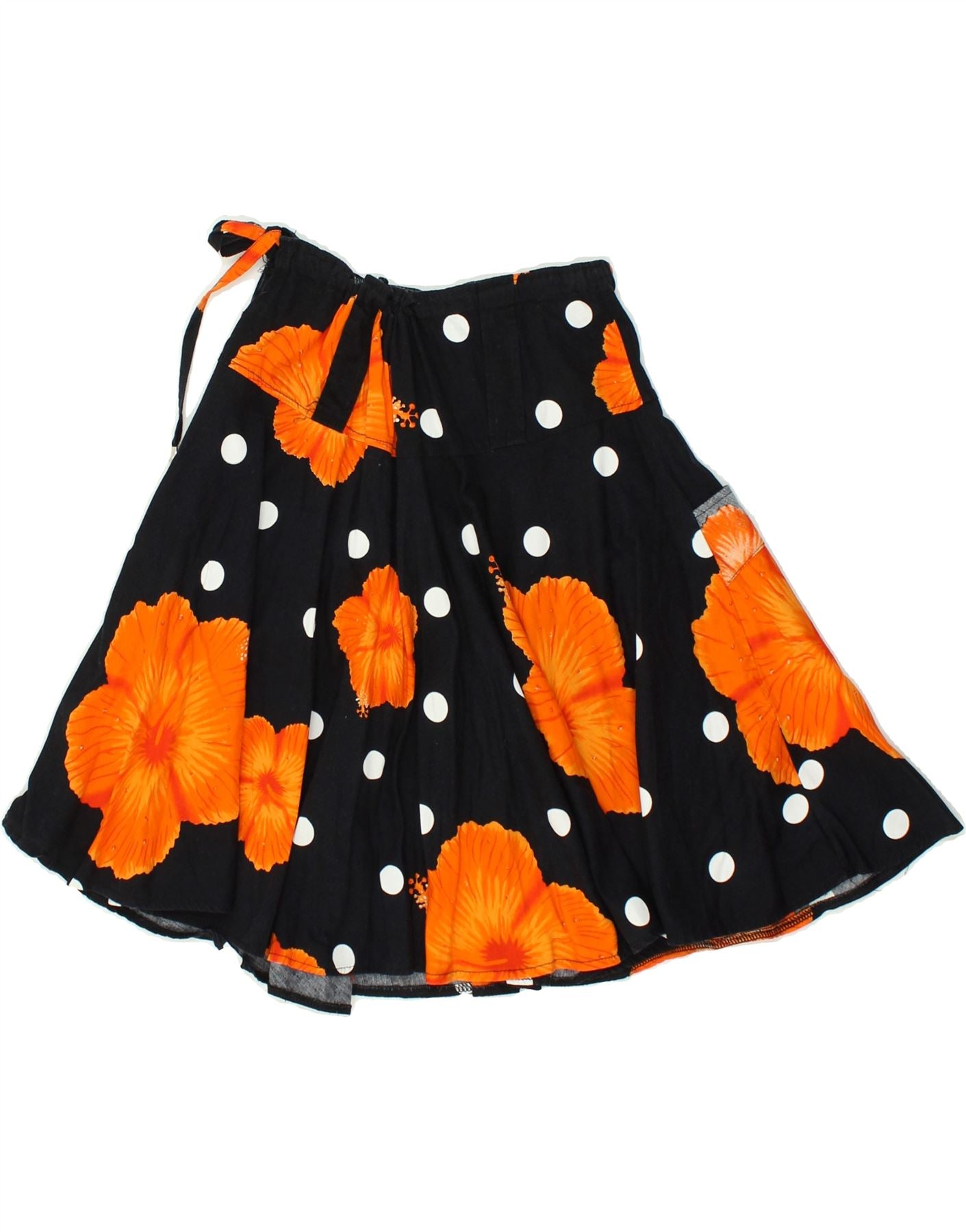 ВИНТАЖНАЯ женская юбка-трапеция W22 2XS Черная с цветочным принтом