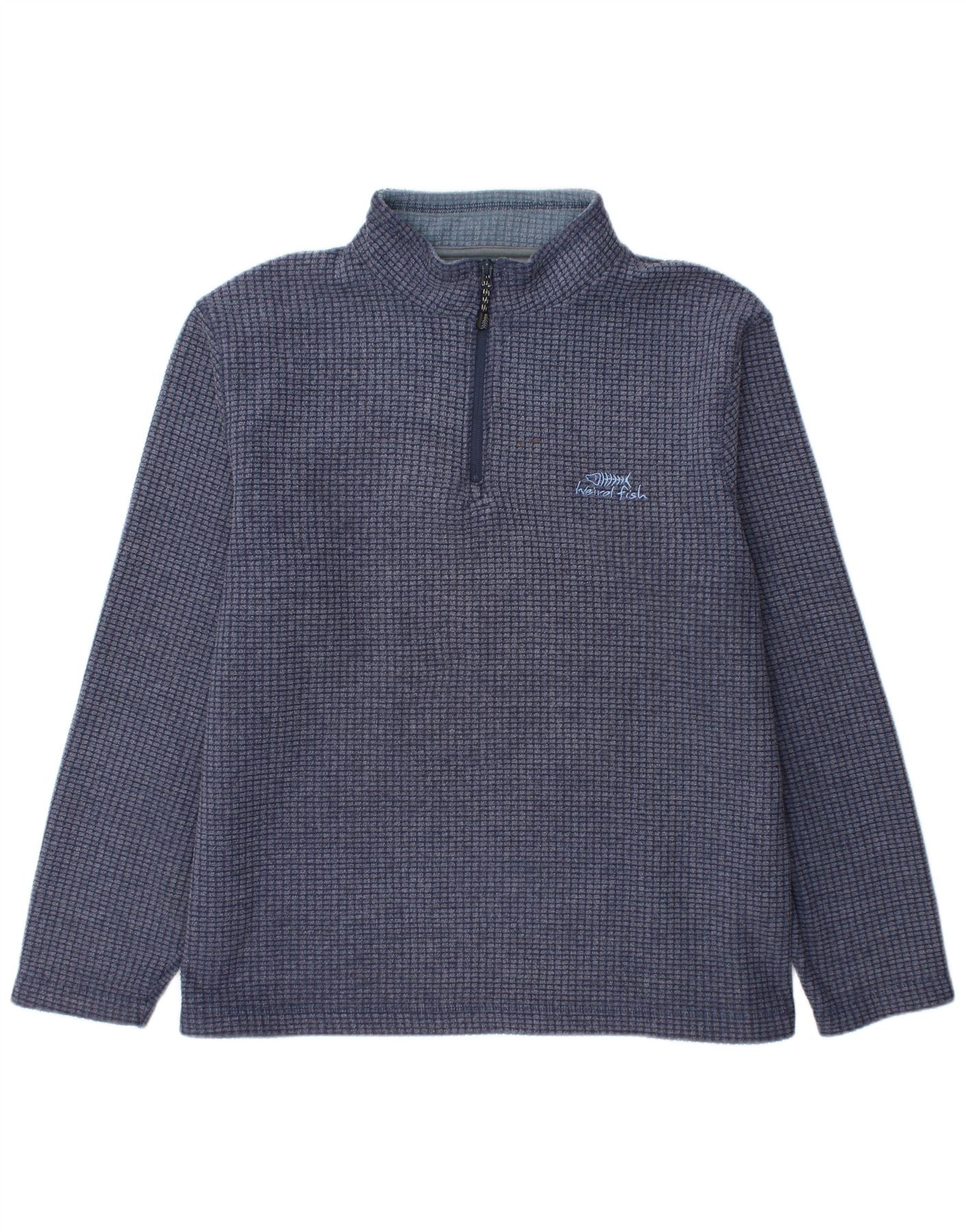 WEIRD FISH Mens Zip Neck Sweatshirt Jumper Large Navy Blue Polyester