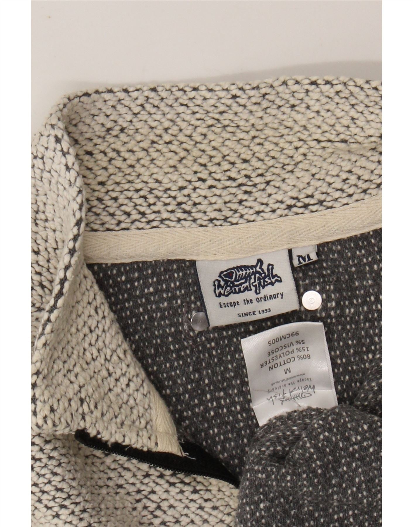 WEIRD FISH Mens Zip Neck Sweatshirt Jumper Medium White Flecked Cotton